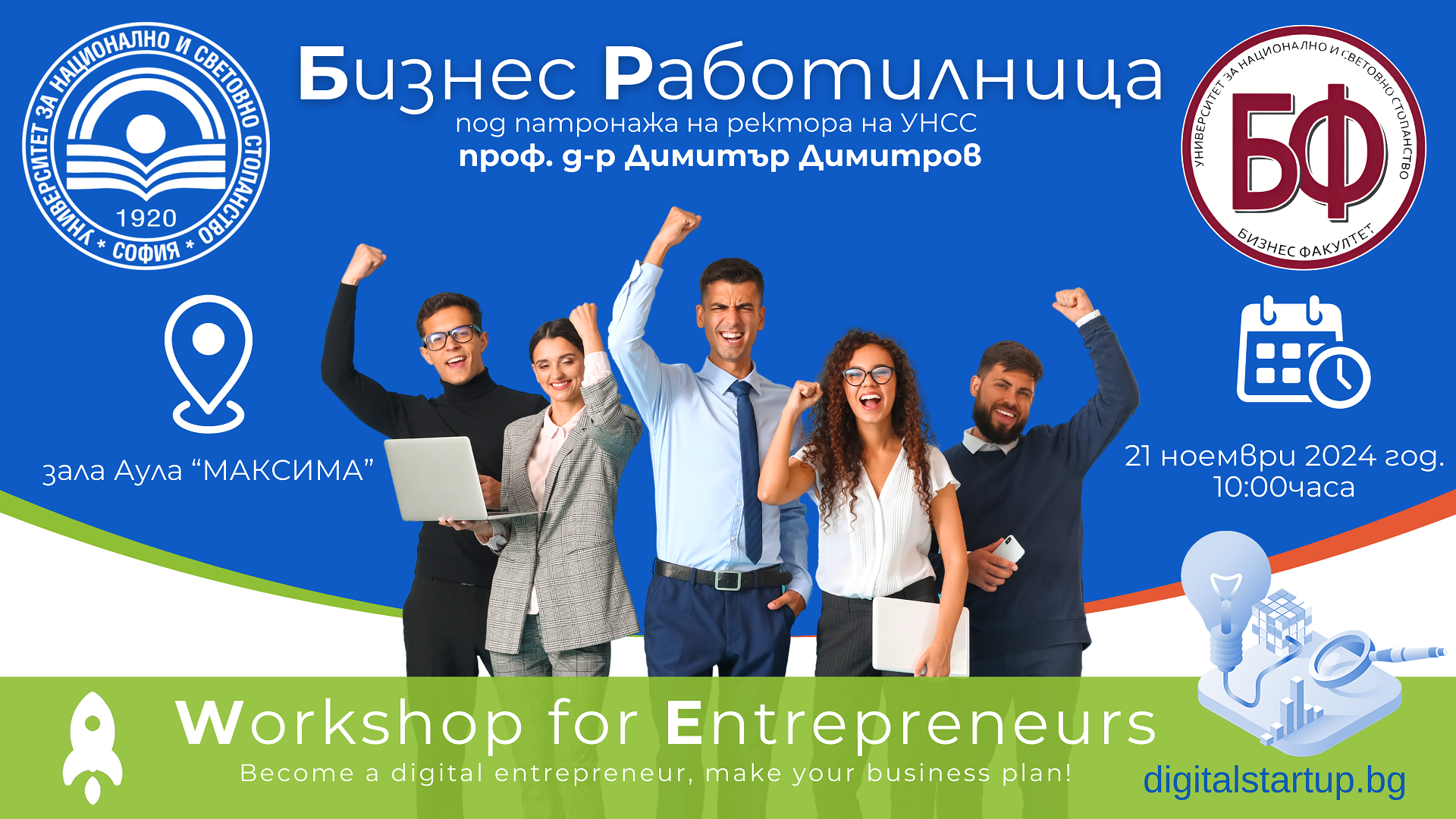 Нека вашите бизнес идеи оживеят в дигиталния свят! Не пропускайте да се регистрирате и да се включите в предизвикателството на Бизнес работилница 2024 / Workshop for Entrepreneurs 2024!