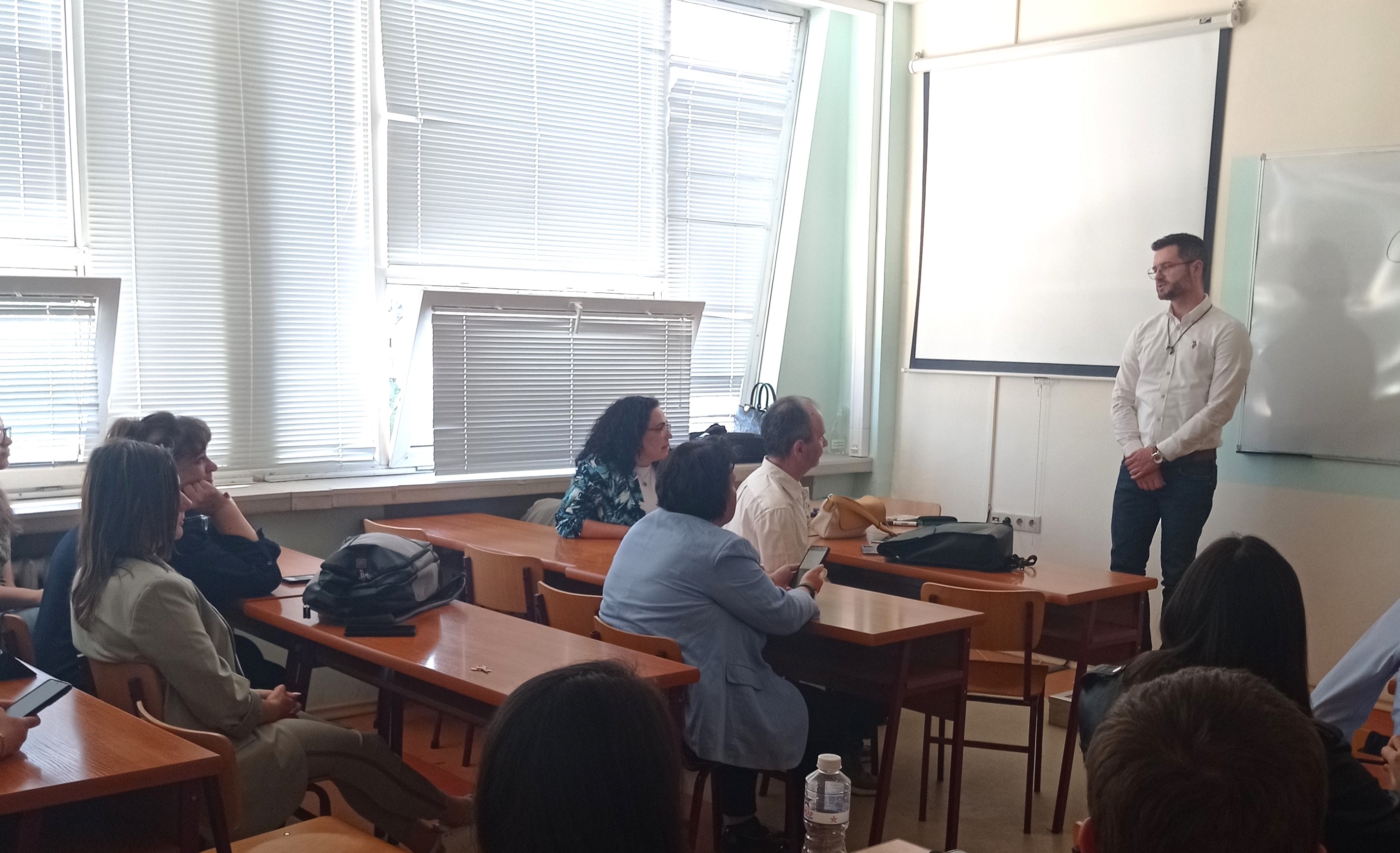 Евгени Стойчев разказа на студентите за своя професионален път – от завършването на УНСС до старши мениджър в KPMG. Сподели за усилията, които е трябвало да положи, за да получи сертификатите Certified Information Systems Auditor (CISA) and Certified Data Privacy Solutions Engineer (CDPSE) – ISACA USA, Certified Internal Auditor (CIA), The IIA USA; Certification in control self-assessment (CCSA), The IIA USA; Internal auditor of QMS – ISO 19011, ISO 27001, ISO 20000-1, ISO 9001, ISO 14001, като почерта, че положеният труд се възнаграждава и посъветва студентите да инвестират в себе си, защото практиката има нужда от сертифицирани одитори. Той представи и полезна информация, свързана с възможностите за работа в KPMG за позициите Analyst, IT Audit and Data Analytics (BI).