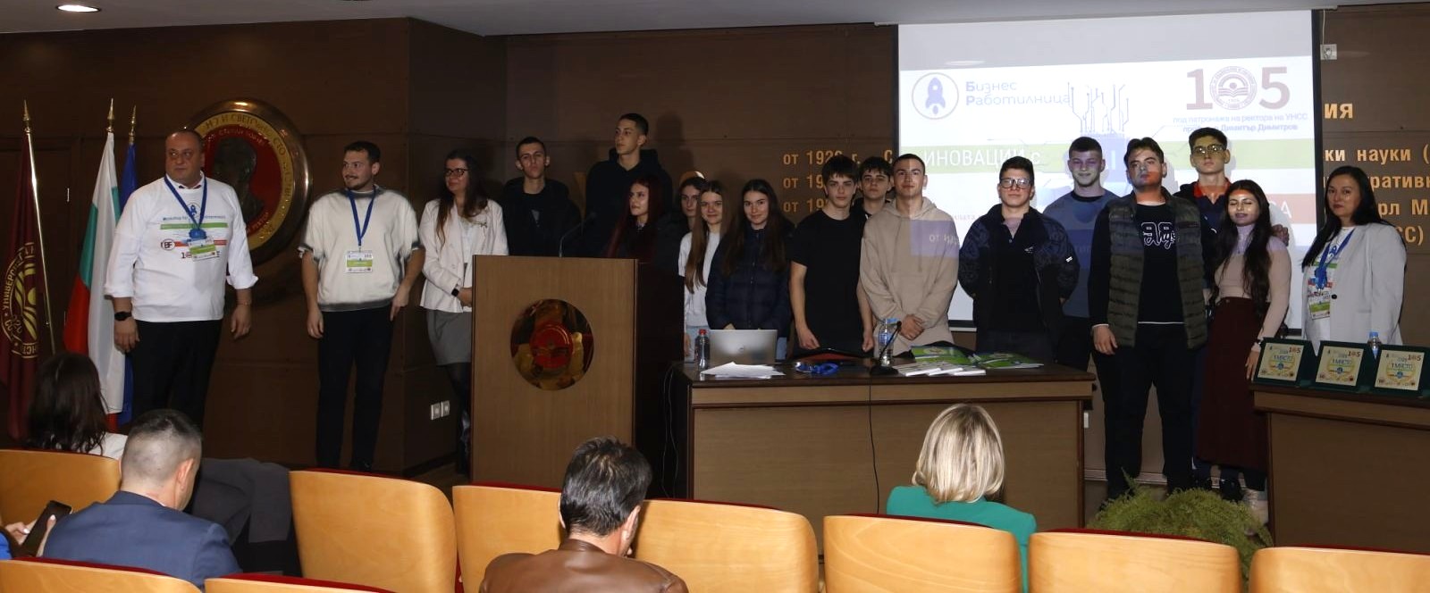 Учениците присъстваха на Бизнес работилница за предприемачи 2025 г., която се провежда за трета година от Бизнес факултета и Студентския съвет, а темата бе „Иновации с AI в бизнеса“.