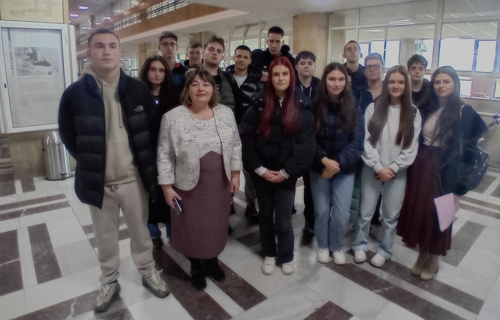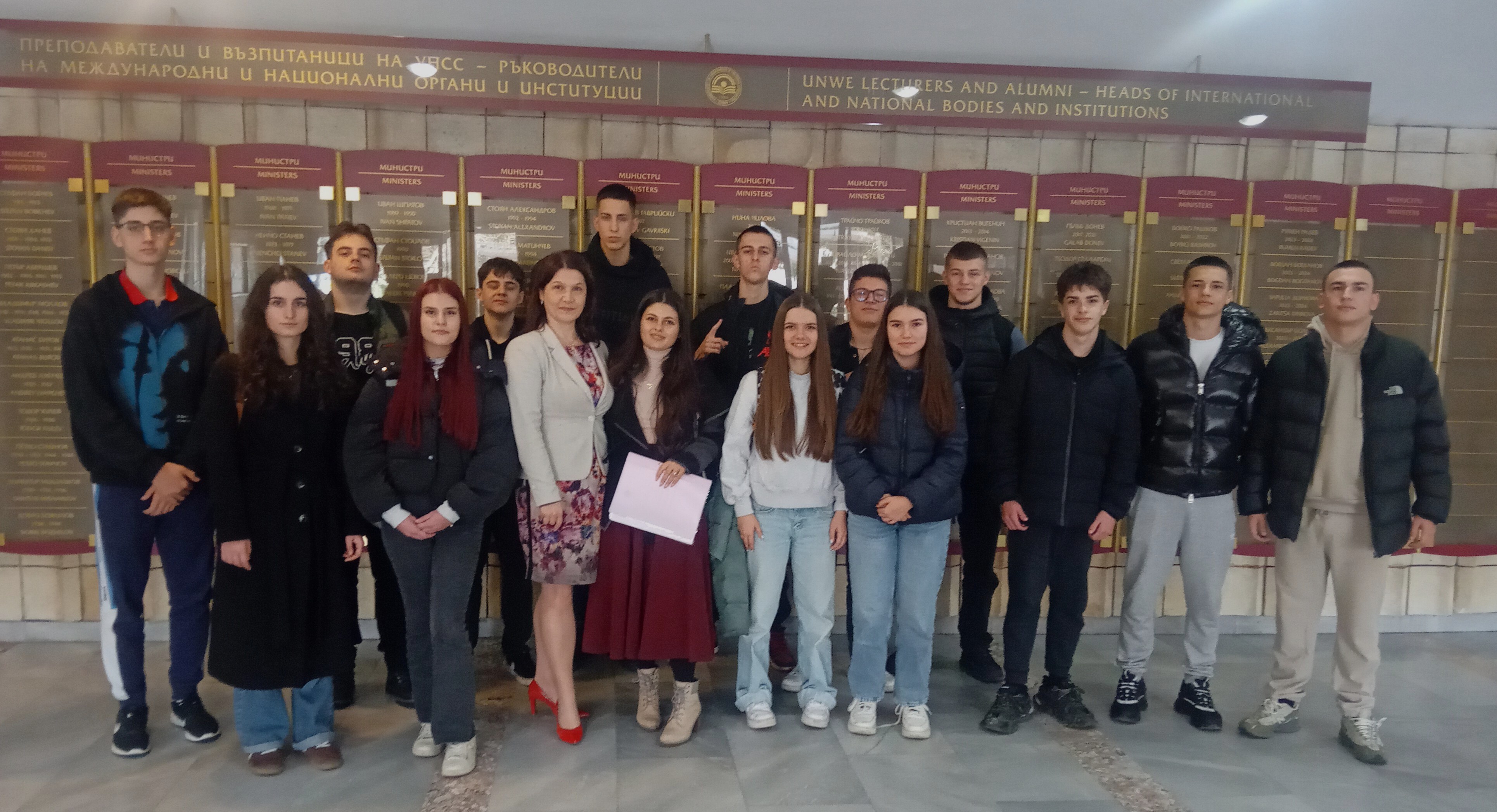 Ученици от Частна гимназия по природни науки и предприемачество „Асен Йорданов“, заедно с г-жа Яница Бойчева – учител по предприемачество, бяха гости на нашия университет. Те посетиха Университетската библиотека и имаха среща с проф. д-р Матилда Александрова, зам.-ректор по учебната дейност. Учениците се запознаха със специалностите и формите на обучение, които УНСС предлага и споделиха своето желание да продължат обучението си в Университета.