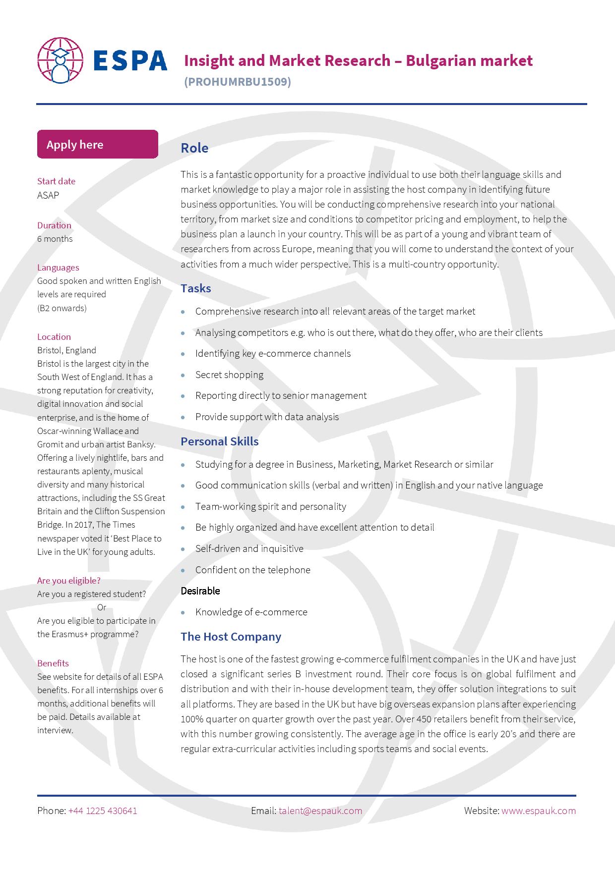 European Student Placement Agency /ESPA/ - Internship for Bulgarian Students