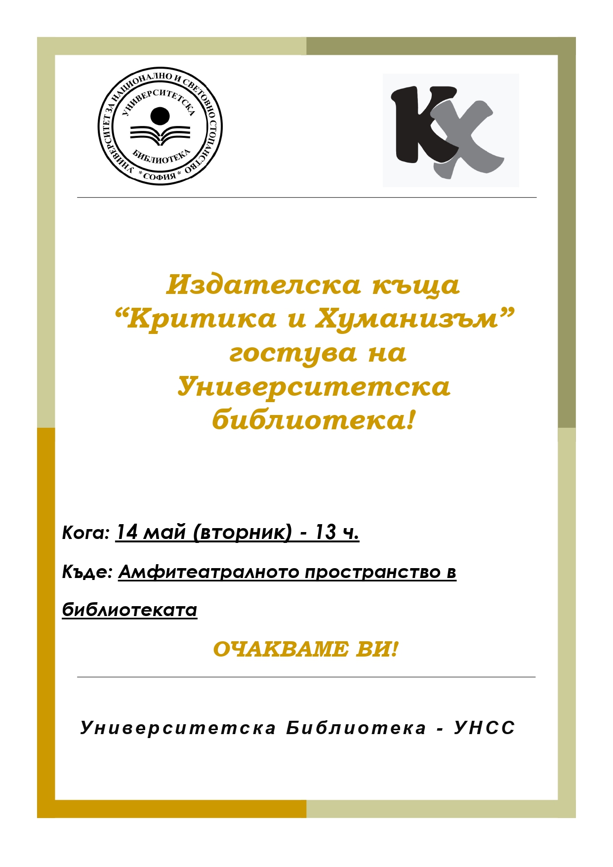 Издателска къща „Критика и Хуманизъм” гостува на Университетската библиотека