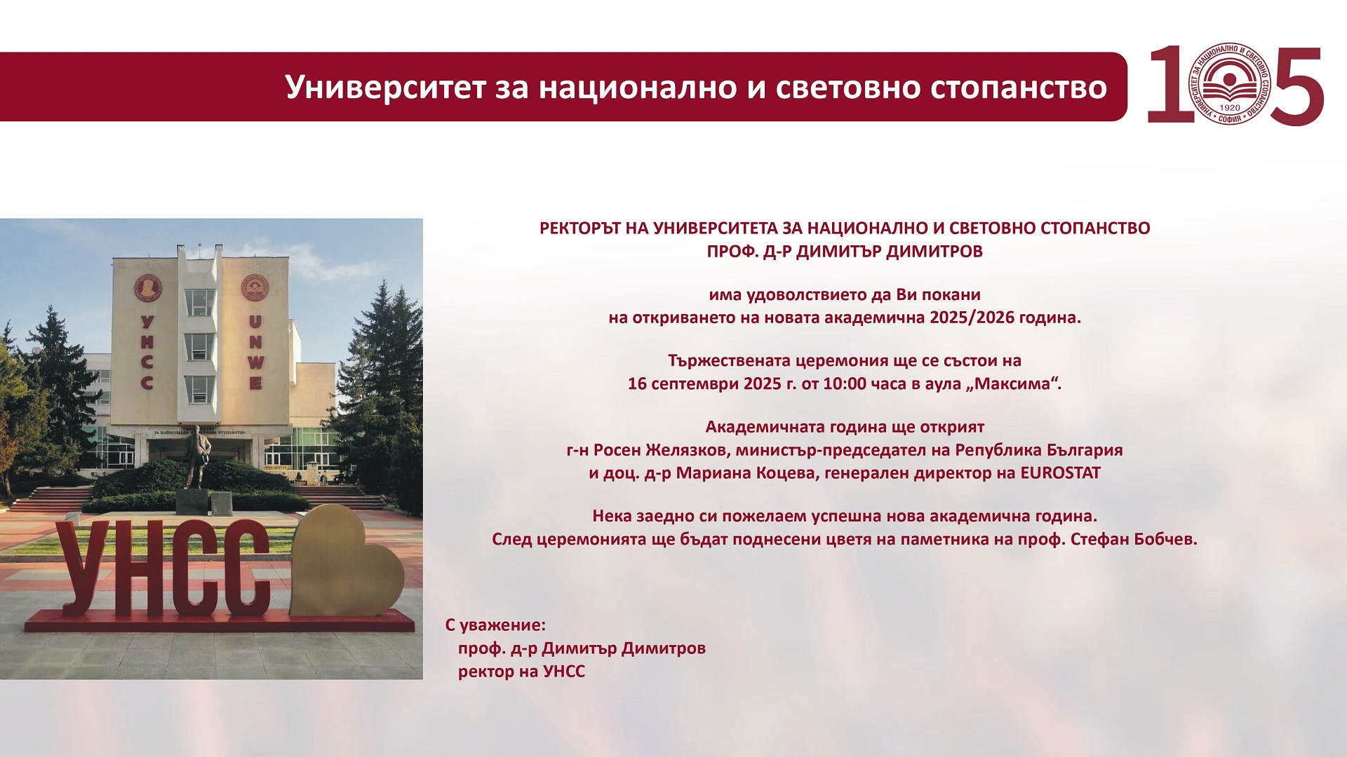 Учебните занятия на 16 септември 2025 г. ще започнат след 14.00 часапо обявеното семестриално разписание. |