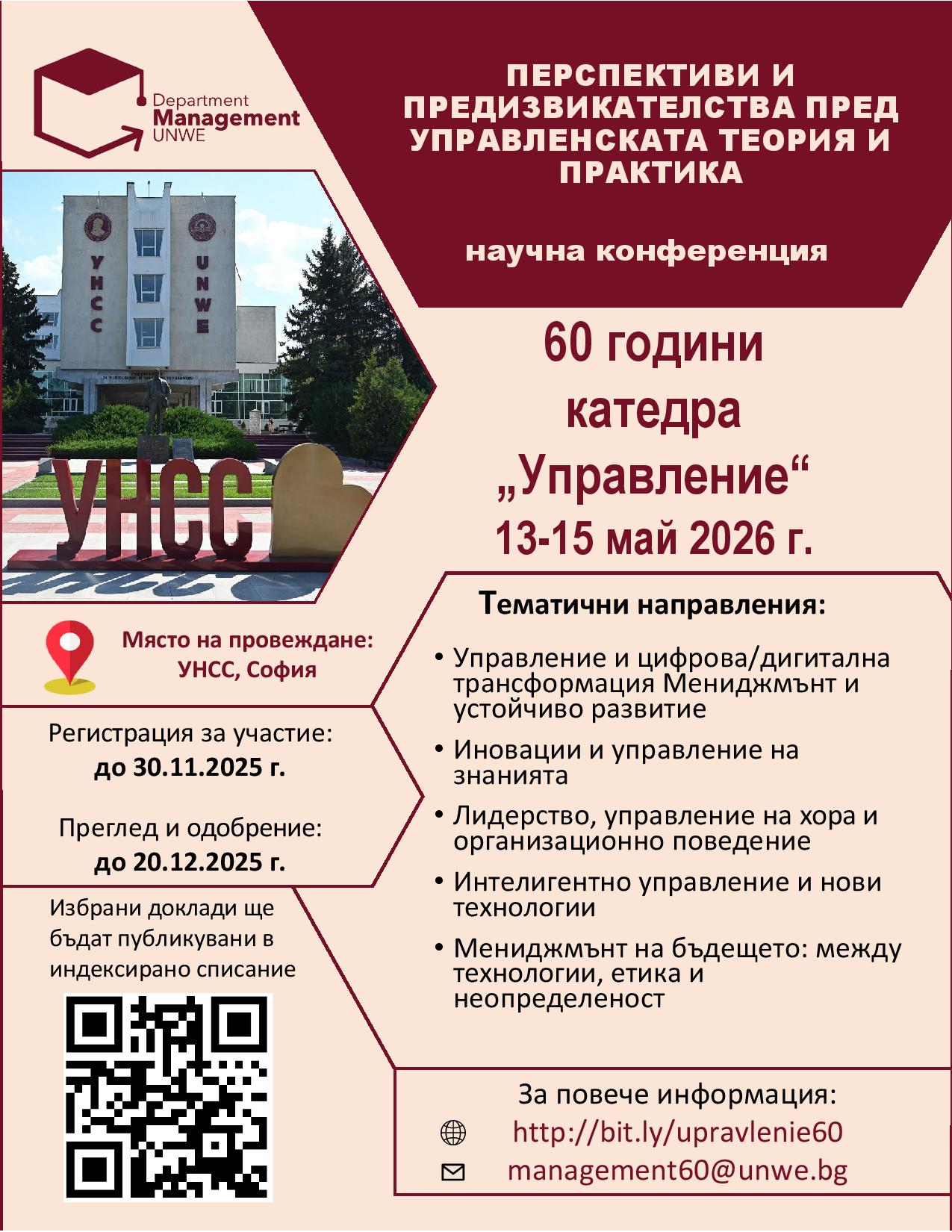 Юбилейна научна конференция по случай 60-годишнината на катедра „Управление“ на тема „Перспективи и предизвикателства пред управленската теория и практика“