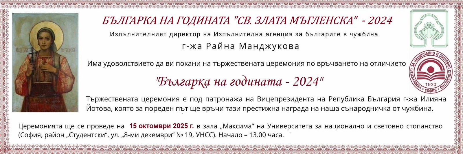 Тържествена церемония по връчването на отличието „Българка на годината 2024“