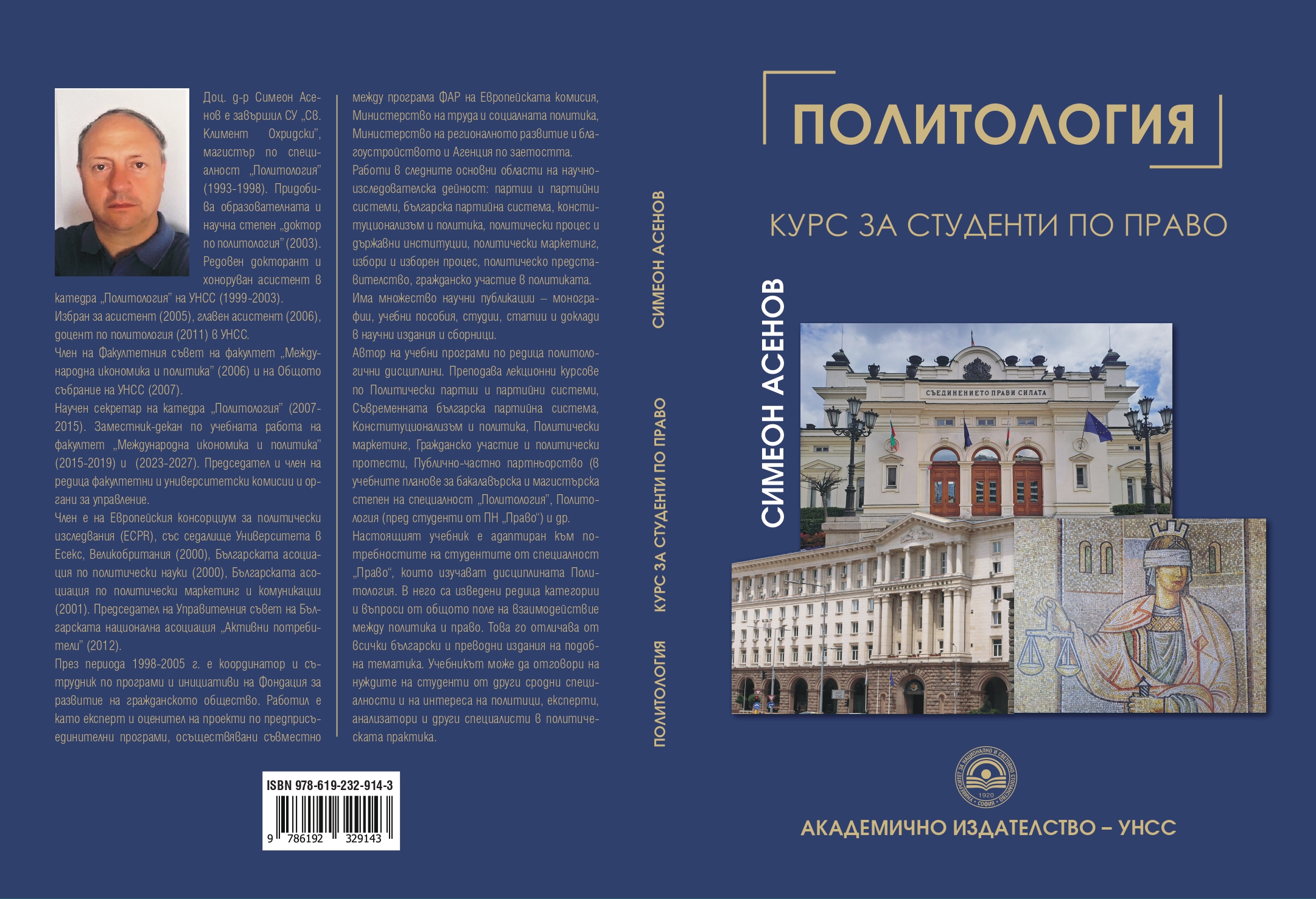 Изданието „Политология. Курс за студенти по право“, с автор доц. д-р Симеон Асенов, зам.-декан по учебната работа на факултет „Международна икономика и политика“ и преподавател в катедра „Политология“, е адаптирано към потребностите на студентите от специалност „Право“, които изучават дисциплината „Политология“. В него са изведени редица категории и въпроси от общото поле на взаимодействие между политиката и правото, като това го отличава от всички български и преводни издания на подобна тематика. Книгата може да отговори на нуждите и на студенти от сродни специалности и на интереса на политици, експерти, анализатори и други специалисти в политическата практика.