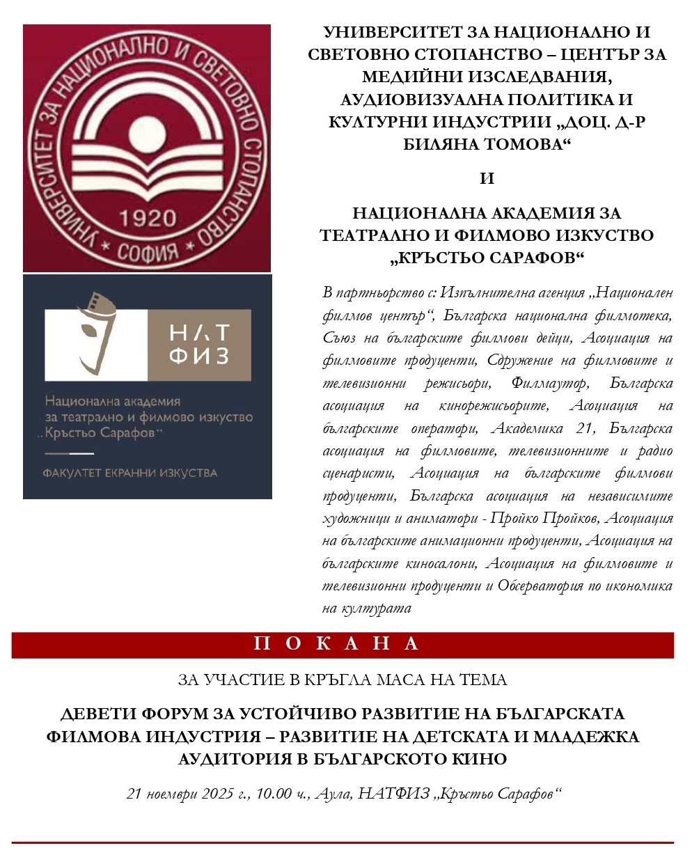 Кръгла маса „Девети форум за устойчиво развитие на българската филмова индустрия - развитие на детската и младежка аудитория в българското кино“