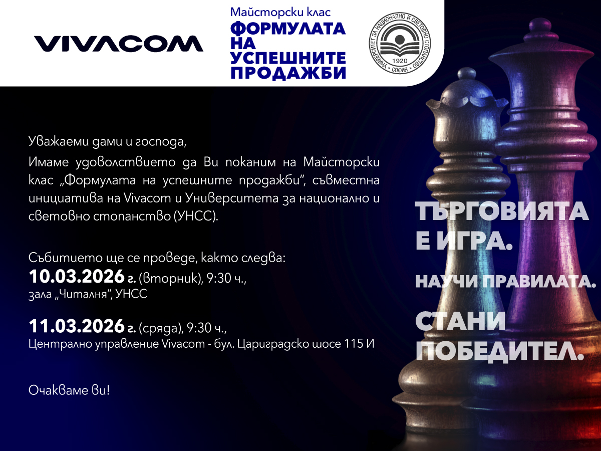 Заповядайте на семинара „Формулата на успешните продажби“, организиран съвместно от Vivacom и УНСС.