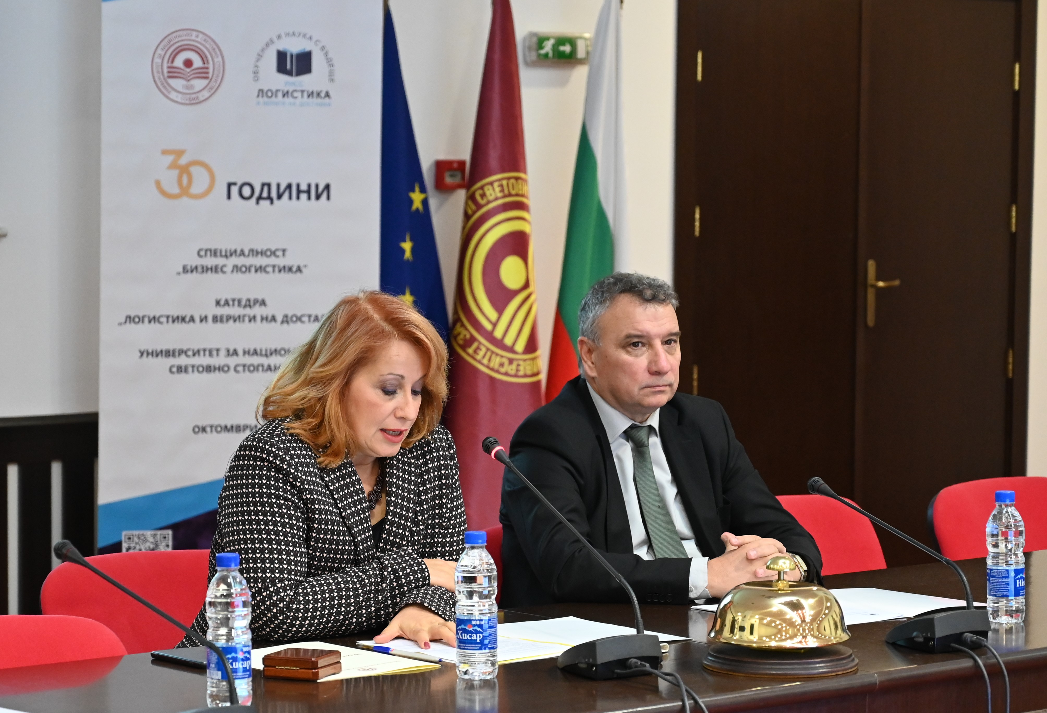 Научна и бизнес конференция по повод 30 години от създаването на специалност „Бизнес логистика" и катедра „Логистика и вериги на доставките" се проведе в Голямата конферентна зала и онлайн. Форумът бе на тема „Иновации и добри практики в логистиката и управлението на веригата на доставките“ и се организира съвместно с Българската асоциация по логистика.