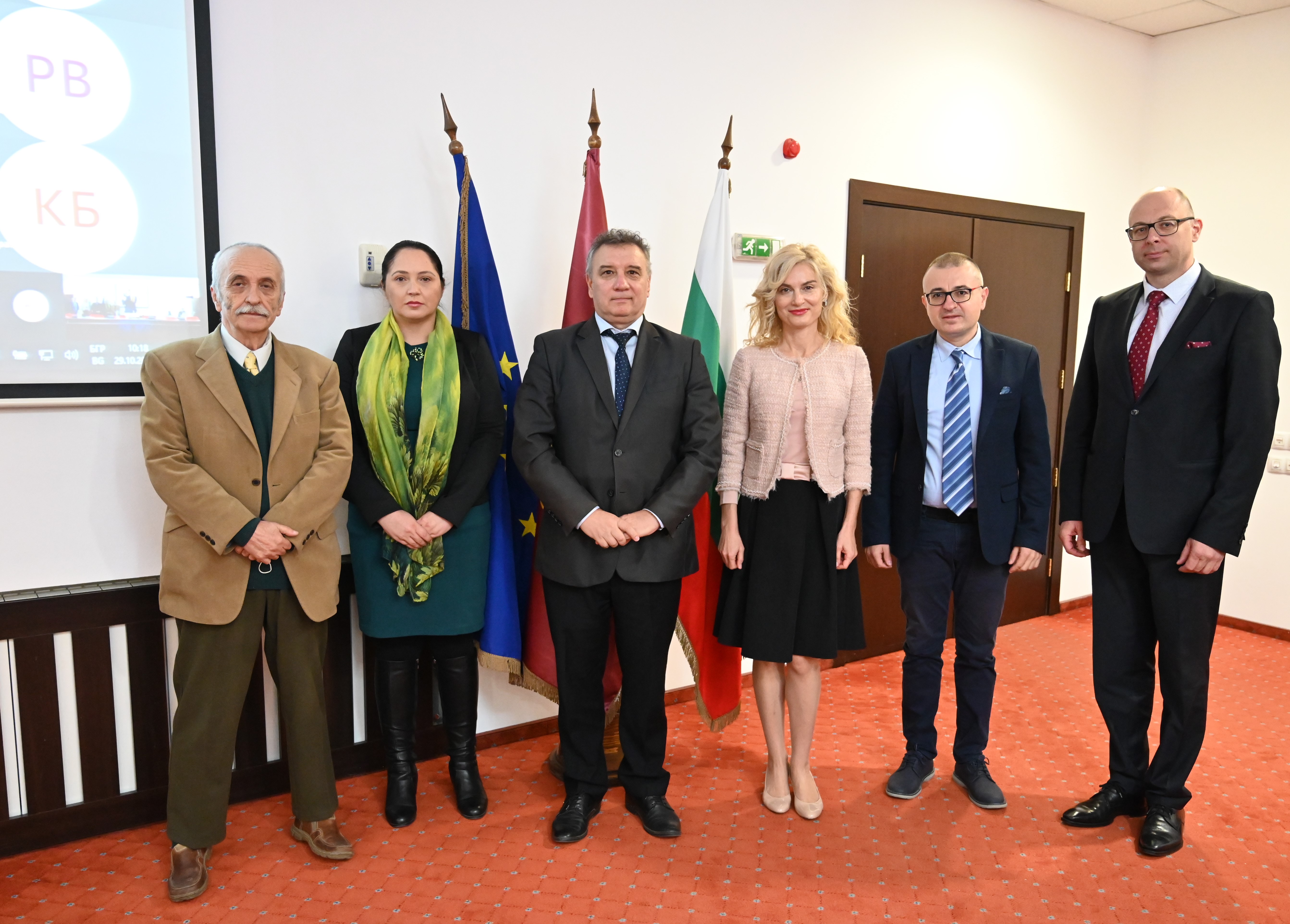 Проф. Георги Генов, доц. Елизабет Йонева, проф. Димитър Димитров, г-жа Зарица Динкова, доц. Пламен Ралчев и г-н Йордан Божилов (от ляво надясно) |