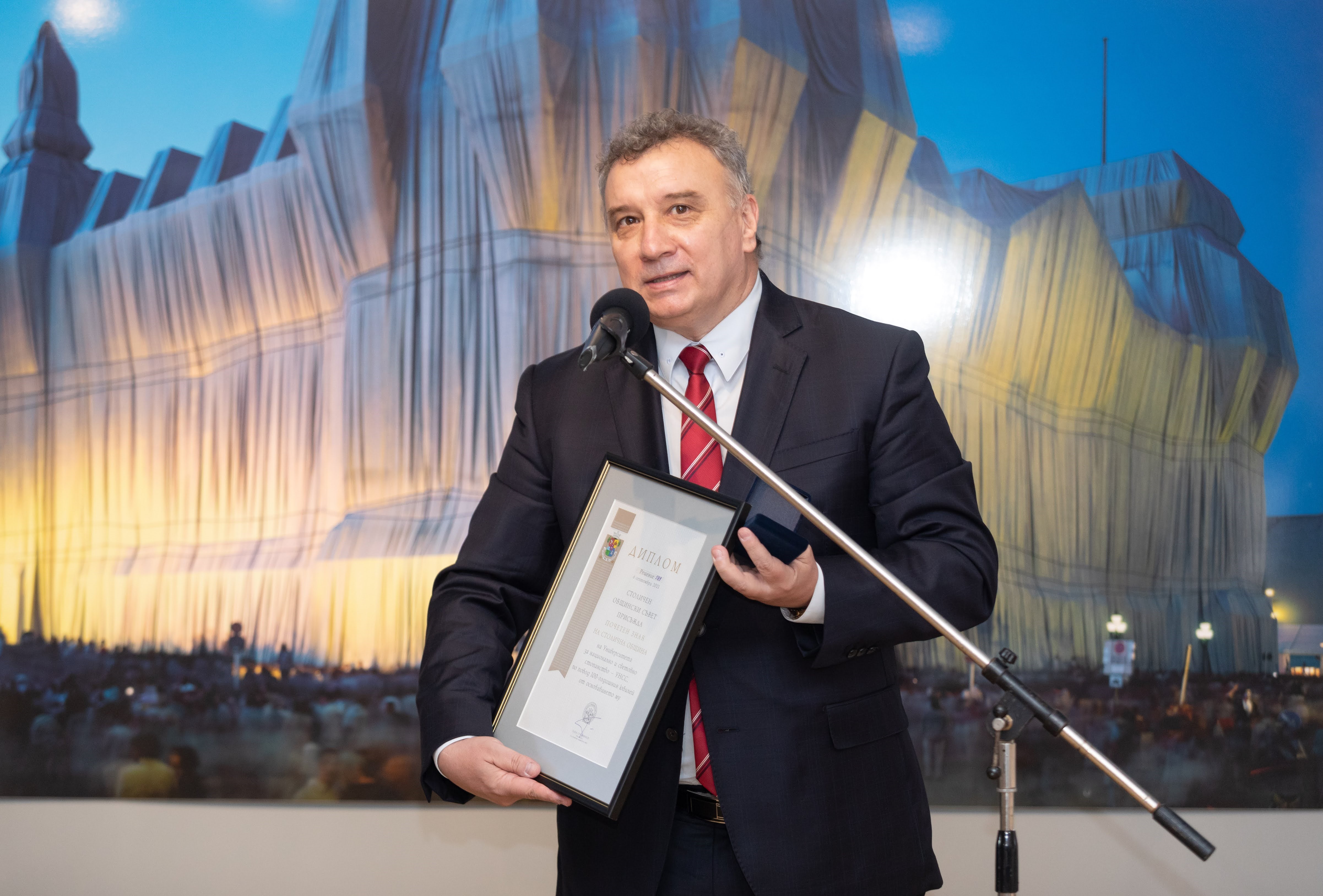 „За мен е голяма чест да присъствам на това събитие, сред толкова изтъкнати българи, които са дали много за духа, за културата, за спорта и за цялото общество. Като ректор на УНСС приемам наградата от името на повече от хиляда будители в нашия университет. УНСС навърши 100 години миналата година и се надяваме, че като столицата продължава да расте, без да старее“, каза ректорът на УНСС проф. д-р Димитър Димитров.