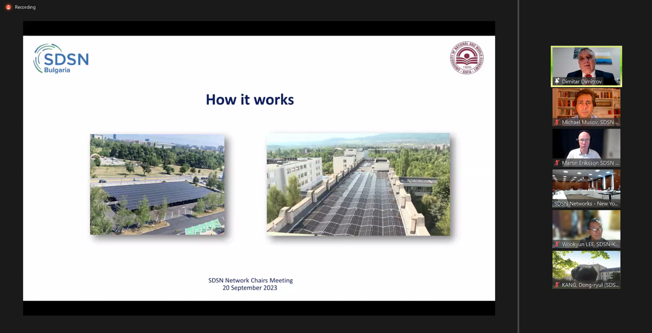На следващия ден заместник-ректорът на УНСС по научноизследователска дейност и международно сътрудничество и съпредседател на SDSN Bulgaria доц. д-р Михаил Мусов участва онлайн в срещата на Лидерския съвет на SDSN (Meeting of the SDSN Leadership Council), посветена на ролята на SDSN в променящия се свят и как тези мрежи от академични и изследователски институции могат да допринесат за справяне с основните предизвикателства.