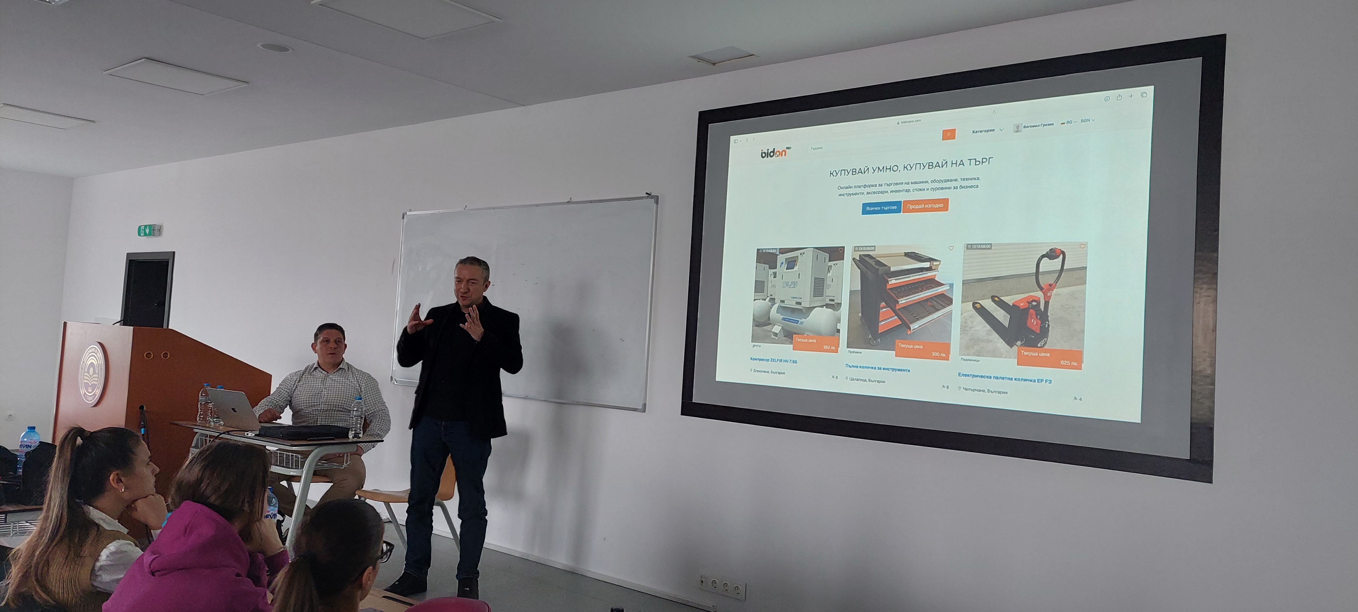 В началото на семестъра Богомил Грозев, дългогодишен журналист и създател на BidOnPro, запозна студентите със задачата за курсов проект, свързан с неговия нов продукт. Работата по тази задача позволи на студентите на много ранен етап да се потопят в процеса по създаване на идейната концепция и на стратегията за маркетингово развитие на продукта.
