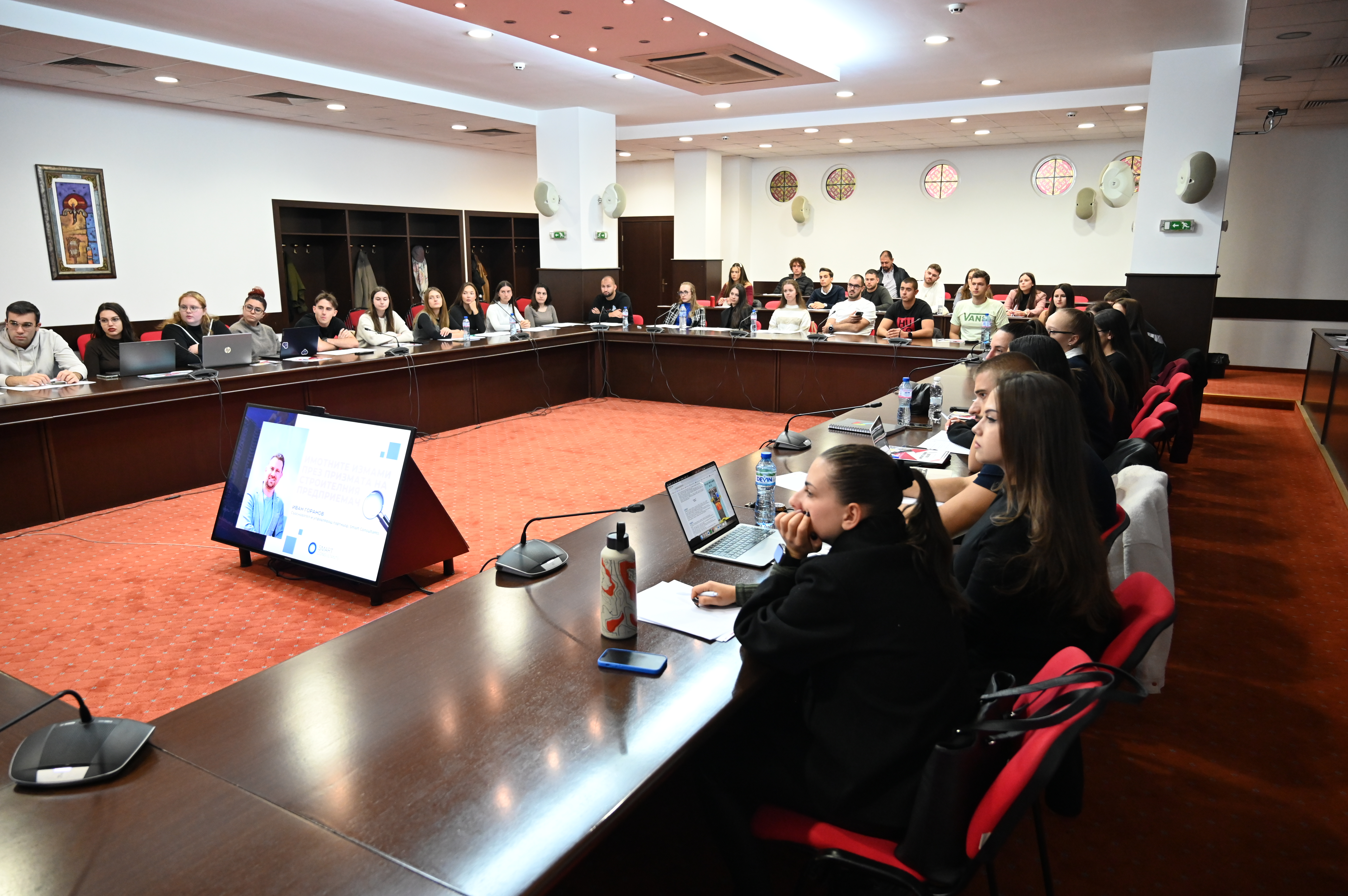 Първият гост-лектор беше Иван Горанов, съосновател и управляващ партньор в Smart Consultants, с дългогодишен опит в сферата на недвижимите имоти и строителството.