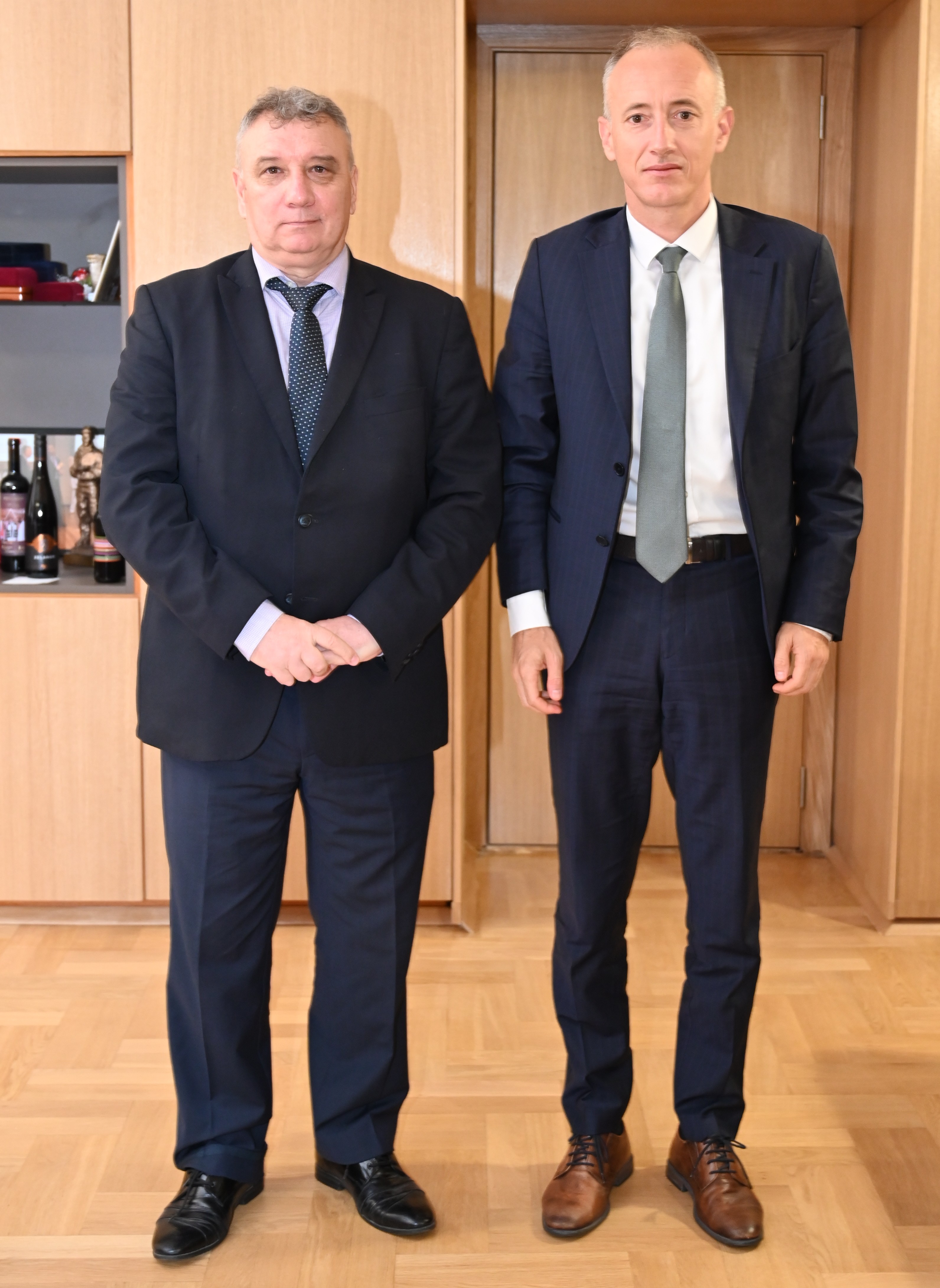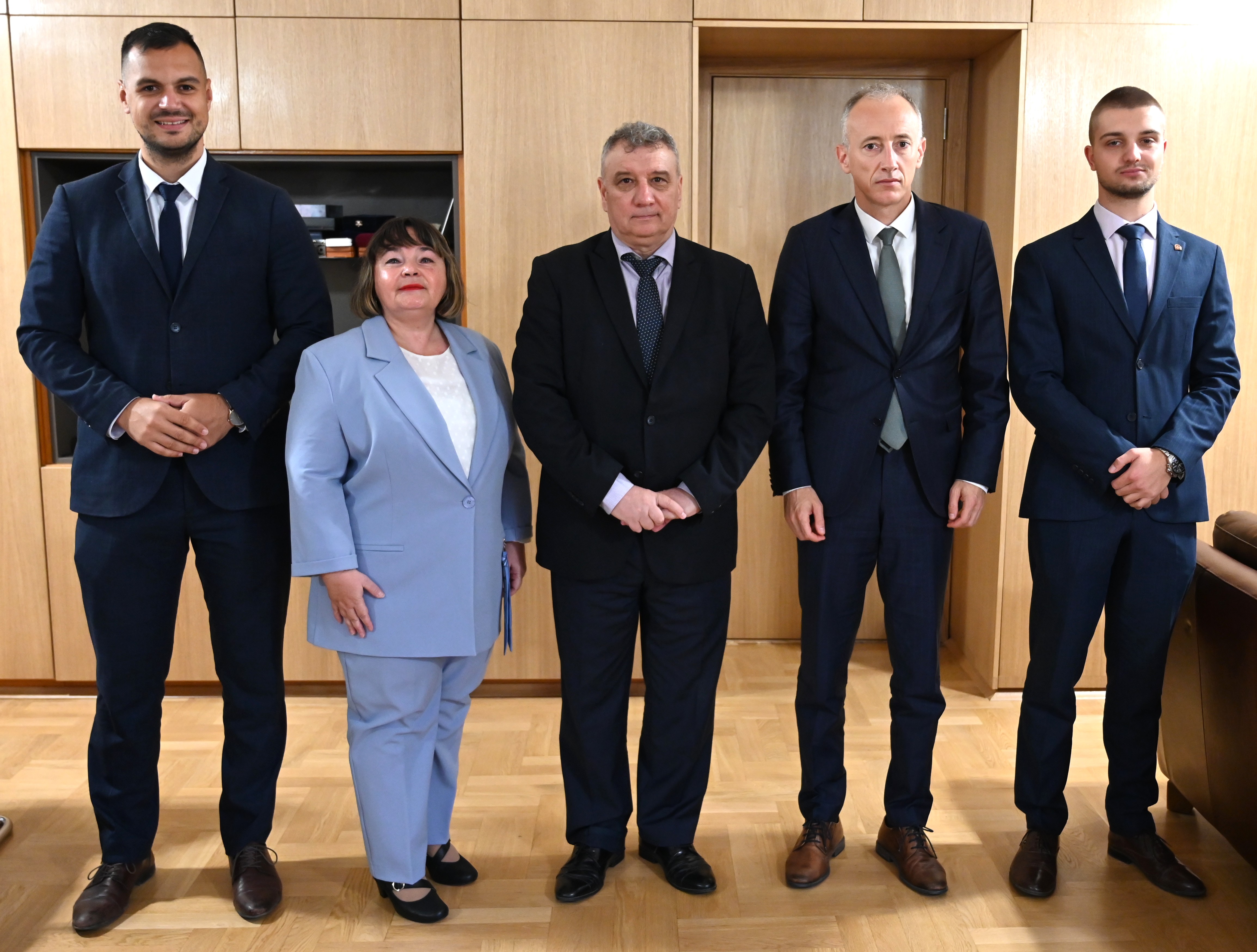 Калоян Стефанов и Ангел Стойков връчиха на министър Красимир Вълчев почетен плакет за значим принос в утвърждаването и развитието на МИФ.