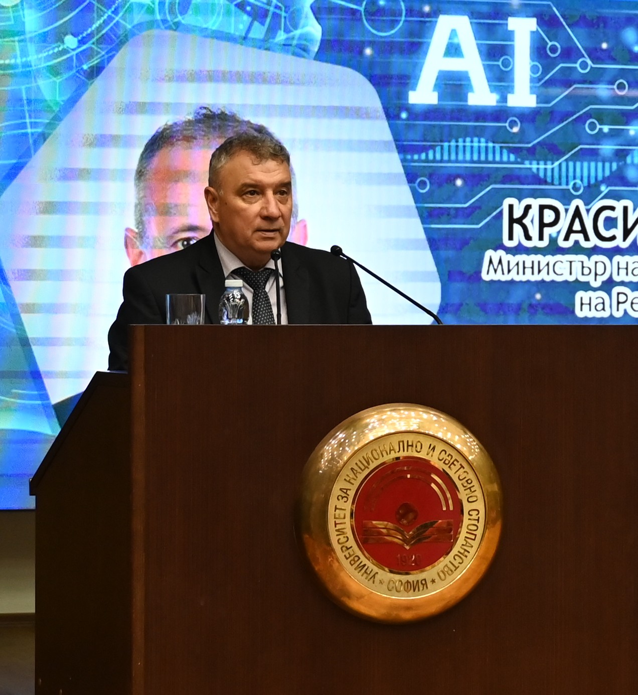 Той отбеляза и нуждата от изграждане на екосистеми от стартиращи компании, научни звена и институции, припомняйки решението на Министерския съвет за създаването на Институт за изкуствен интелект в икономиката към УНСС. Министърът завърши своята лекция с послание към студентите, с което им припомни, че те трябва да учат не толкова и не само заради дипломата, а за да се развиват. „Трябва да учите с нагласата да бъдете знаещи и можещи хора, защото това ще ви направи по-успешни в ерата на променящите се професии“, каза още той.