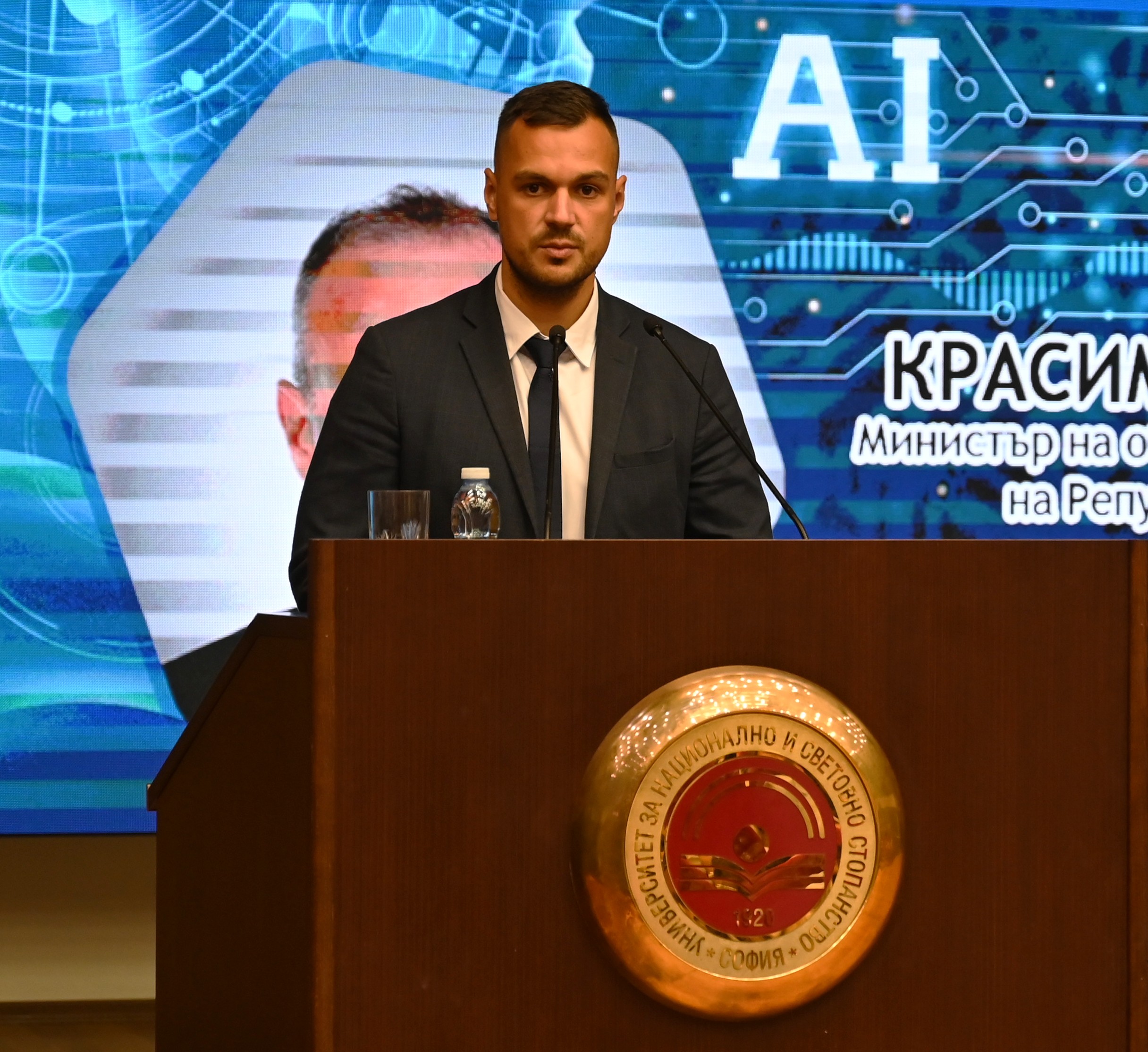 Красимир Вълчев съобщи още, че Министерството на образованието и науката подготвя допълнение на учебните програми с теми, свързани с използването на изкуствения интелект, и предвижда въвеждане на постоянен формат за тяхната актуализация. „Има риск да закърнеят повече умения, отколкото да се надградят и формират нови. И тук е голямото предизвикателство – да намерим формулата“, добави той и уточни, че промените се очаква да влязат в сила от следващата година. Министърът акцентира върху необходимостта България да инвестира в математическото и природонаучното образование. „Въпросът е дали ще имаме дигитални създатели. И това зависи най-вече от това дали ще имаме хора, които да учат задълбочено, най-вече математика, но и физика. Разбира се, изкуственият интелект ще бъде и в медицината, ще бъде и във фармацията“, каза Вълчев.