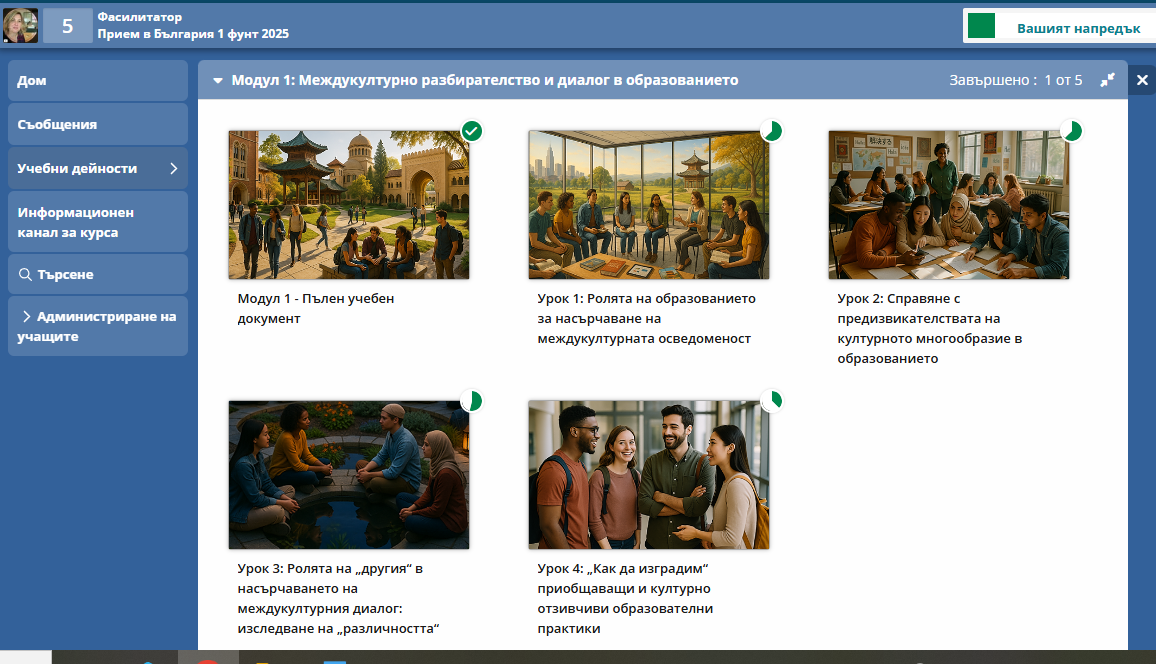 В рамките на курса участващите студенти преминават обучение по социална и критическа педагогика, интеркултурна комуникация и практически умения за работа с младежи мигранти. До момента в курса са се включили над 50 студенти от УНСС и други университети в България, които се обучават през онлайн платформата, разработена специално за целите на проекта от малтийския университет Advenio Academy.