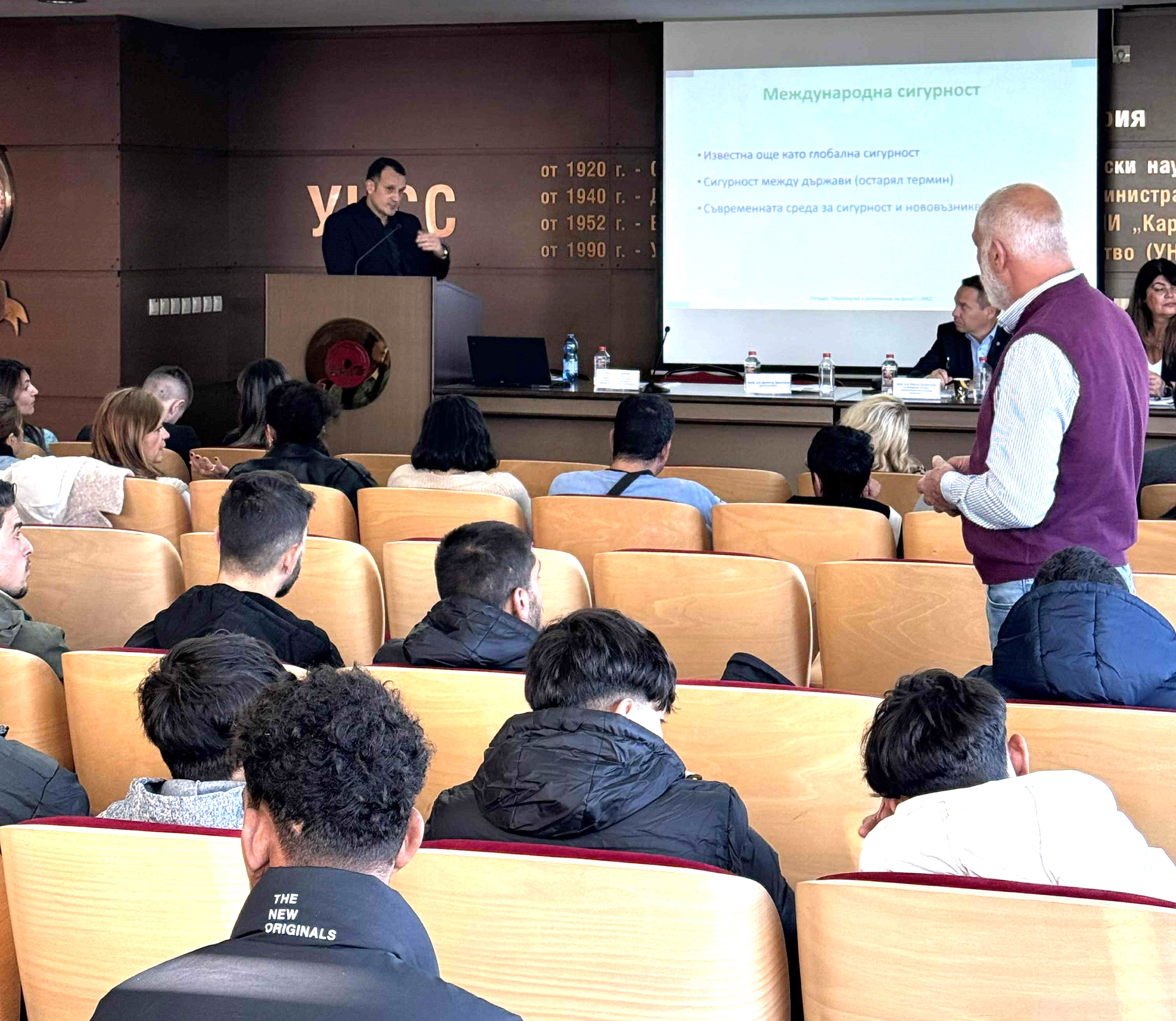 Проф. д-р Димитър Димитров, д-р Васил Павлов, ръководител на проекта и хоноруван преподавател в катедра „Национална и регионална сигурност“, доц. д-р Нончо Димитров, г-жа Милена Маджирска |