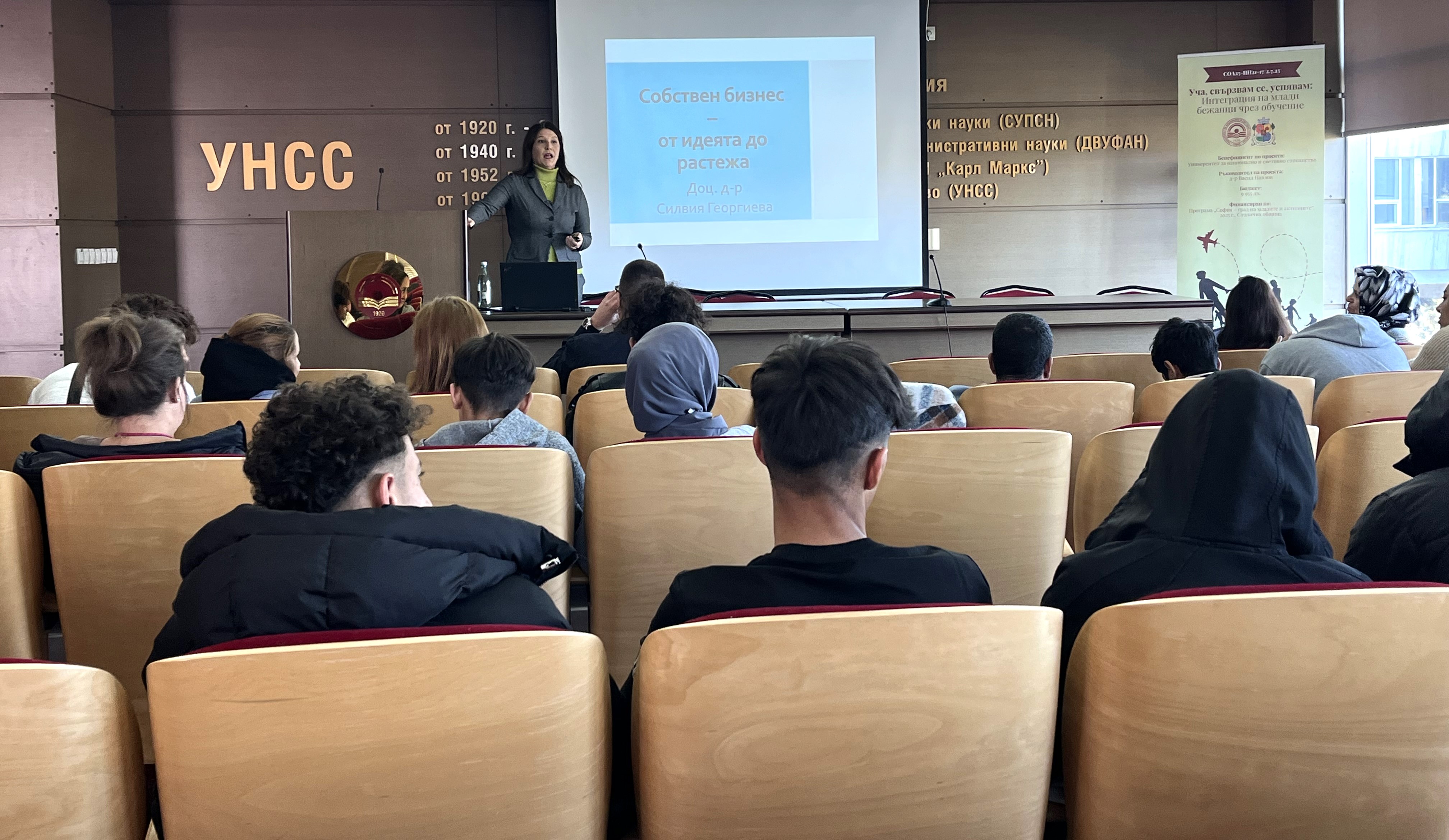 В УНСС се проведоха серия от тематични обучения в рамките на проект СОА25-ДГ56-3040/15.09.2025 г. „Уча, свързвам се, успявам: Интеграция на млади бежанци чрез обучение“, финансиран по програма „София – град на младите и активните“ 2025 г. на Столична община.