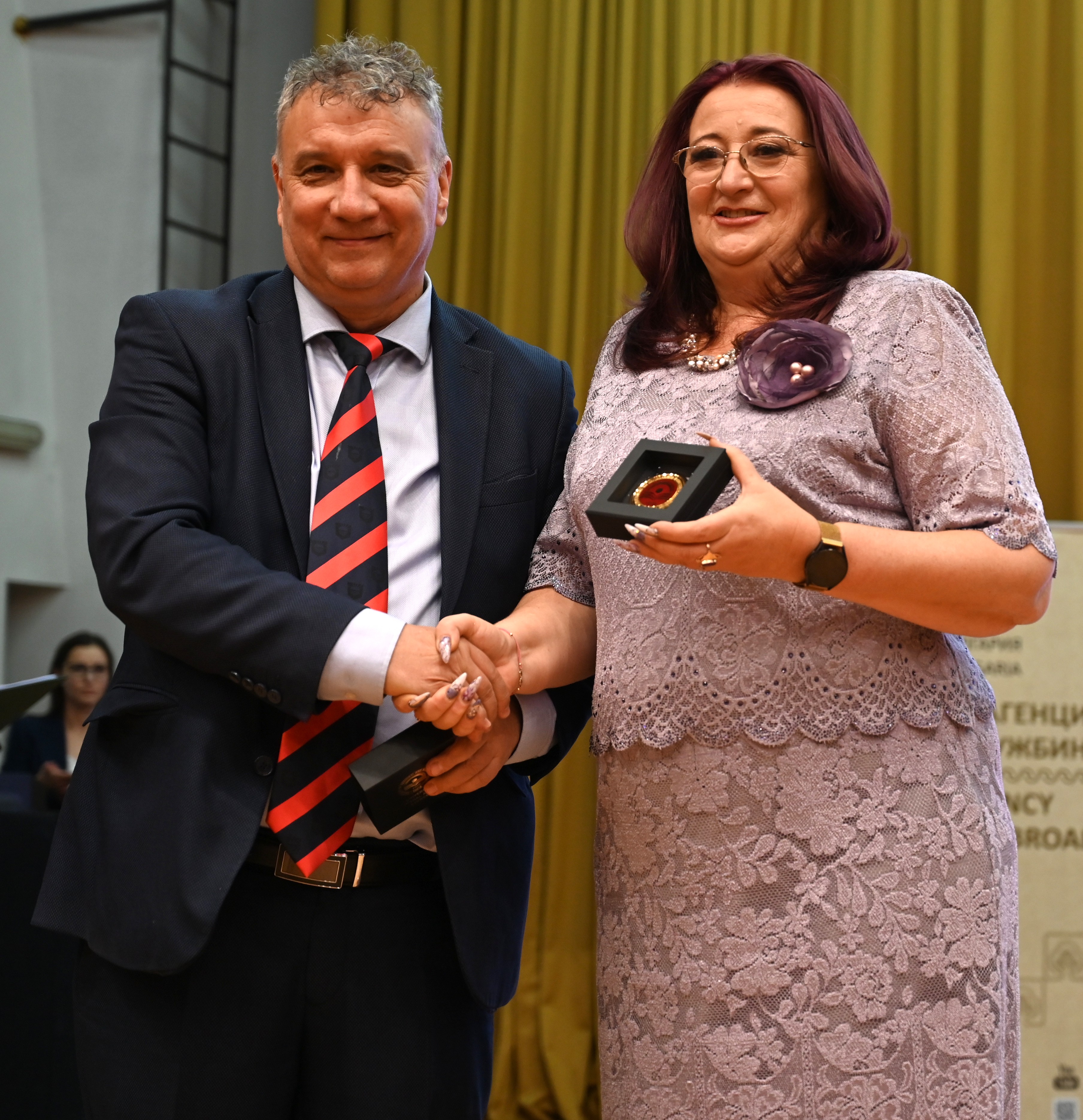 В края на церемонията проф. Димитър Димитров връчи на изпълнителния директор на ИАБЧ Райна Манджукова почетния медал на УНСС, за приноса и усилията й за сплотяване на българите по света.
