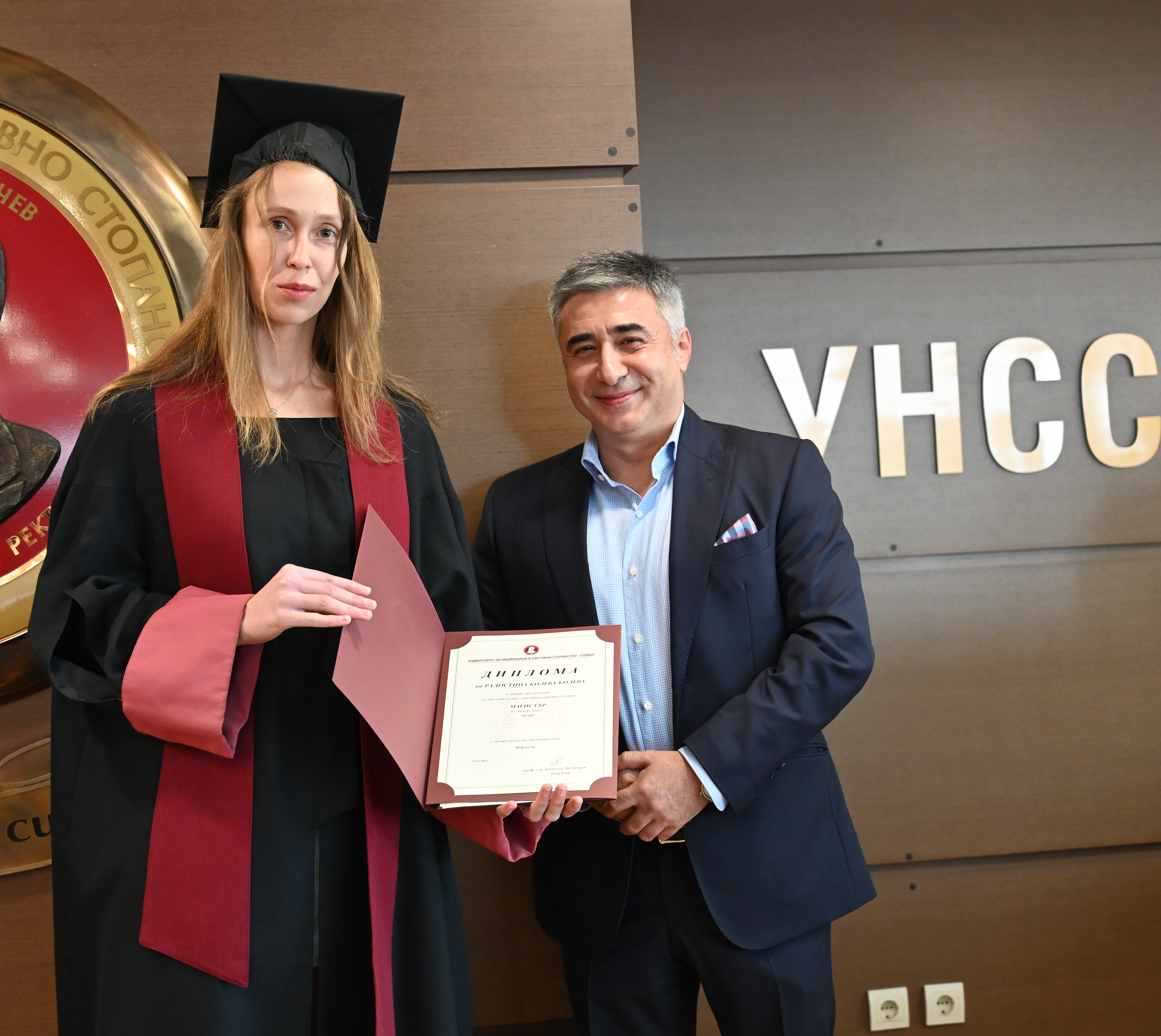 „Вече сте част от правния космос и кръга лица, ангажирани да служим на правото и справедливостта“, посочи зам.-председателят на ВАС – съдия Любомир Гайдов. „Дипломата е едно признание за положения труд, дисциплина и отдаденост, желание и мотив да израствате професионално. Вярвам, че преподавателите са положили усилия да станете истински отговорни личности, защото правото не е просто набор от правила. Предстоят ви дни, в които ще правите избор накъде ще тръгнете – към държавната администрация, бизнеса, политиката или да бъдете общественици. Това е важен избор в едно предизвикателно и противоречиво време, в което ежедневието ще ви сблъсква с човешки съдби. Пожелавам ви да правите света малко по-справедлив, защото ние работим не само със закона, но и с морала – вярвайте в закона, израствайте морално.“