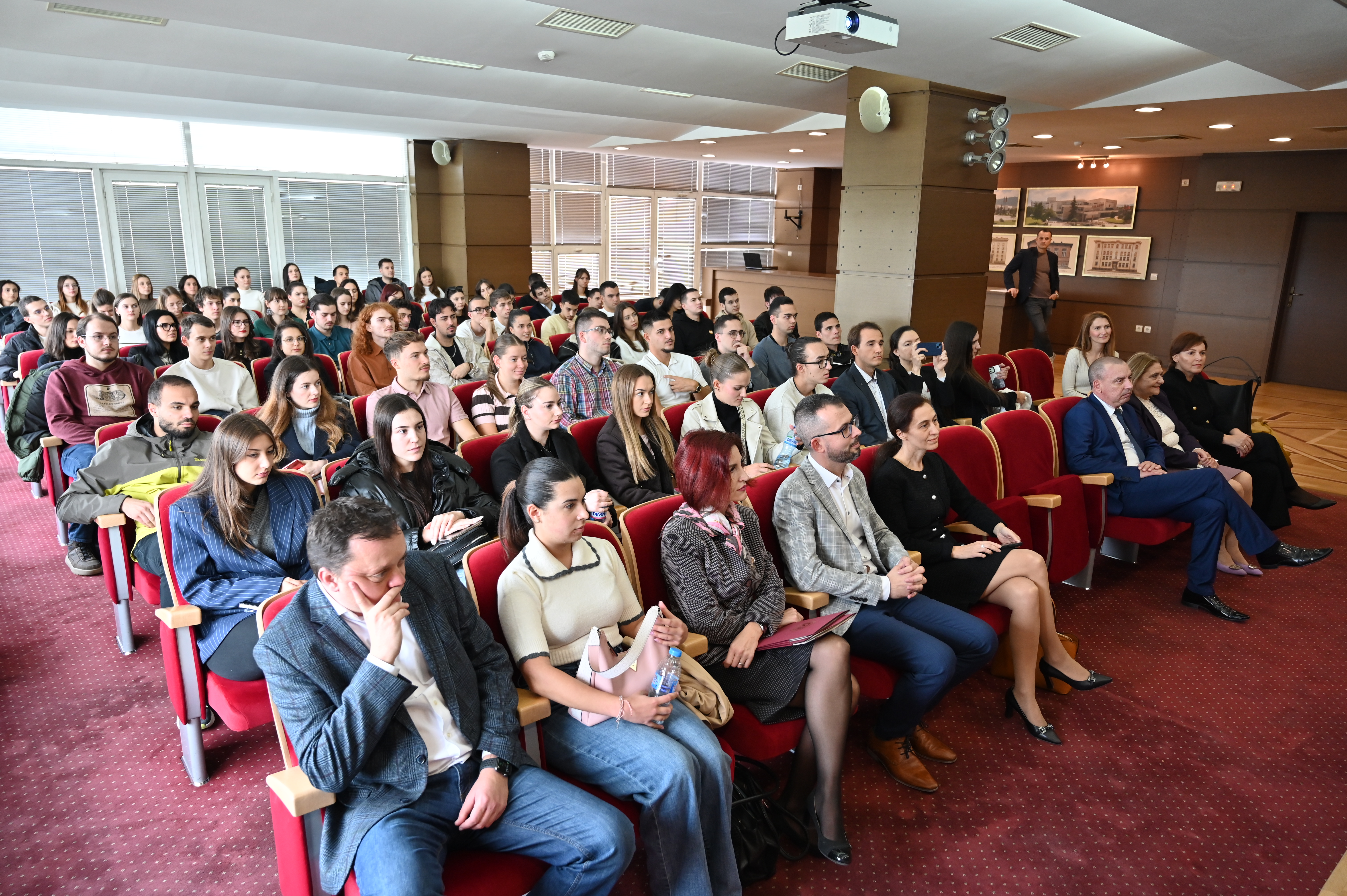 Презентацията на Ренат Хойбергер предизвика огромен интерес сред студентите и преподавателите в залата и се превърна в дискусия по актуални теми на устойчивото развитие.