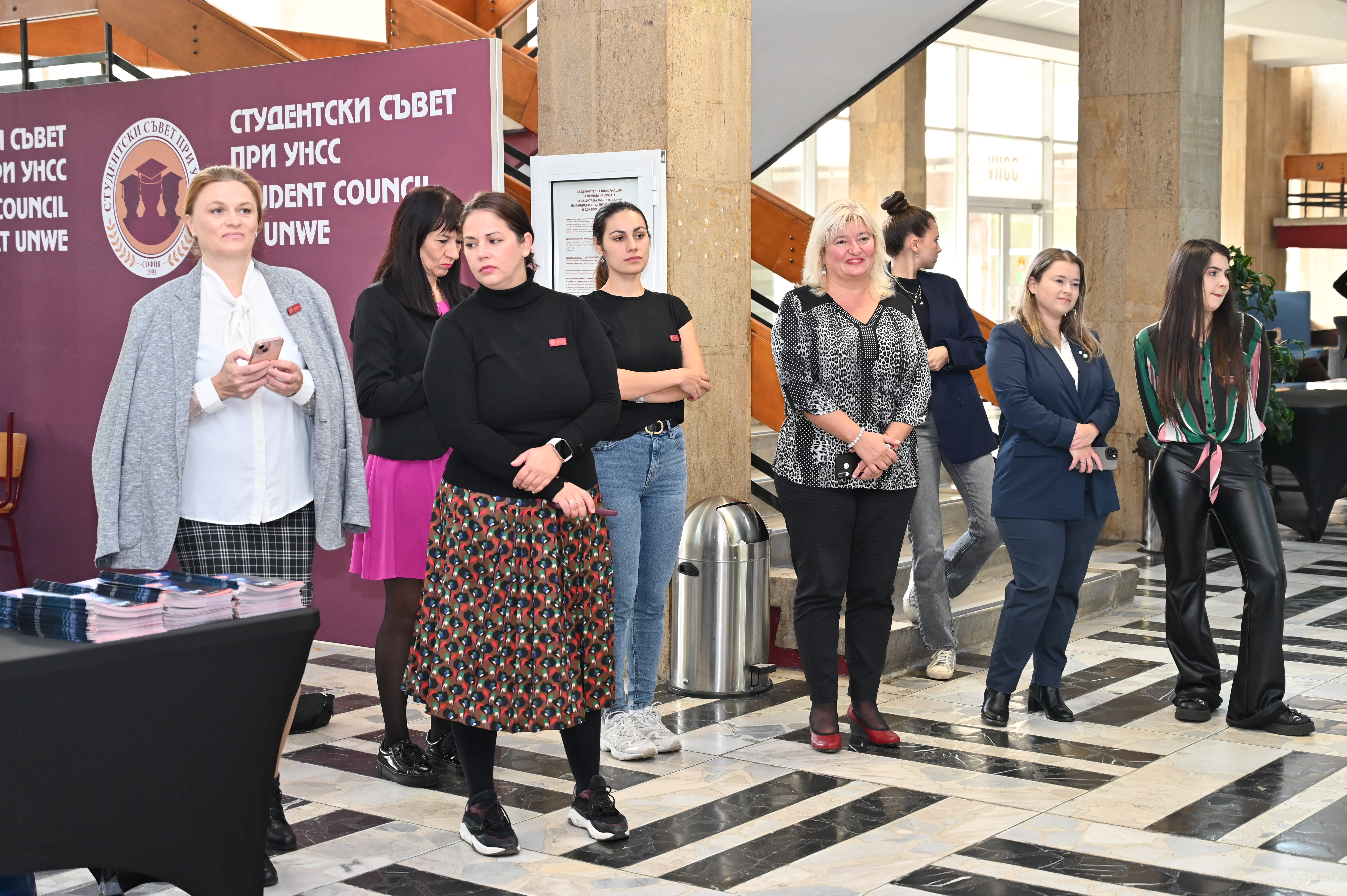 Пламена Панайотова, секретар на Студентския съвет: „Искам да благодаря на всички за предоставената възможност. От името на Студентския съвет при УНСС изразявам благодарност, че и тази година успяваме да си сътрудничим и да работим заедно. За нас това е чест и истинско удоволствие. Нека продължим напред – заедно и още по-успешно!“.