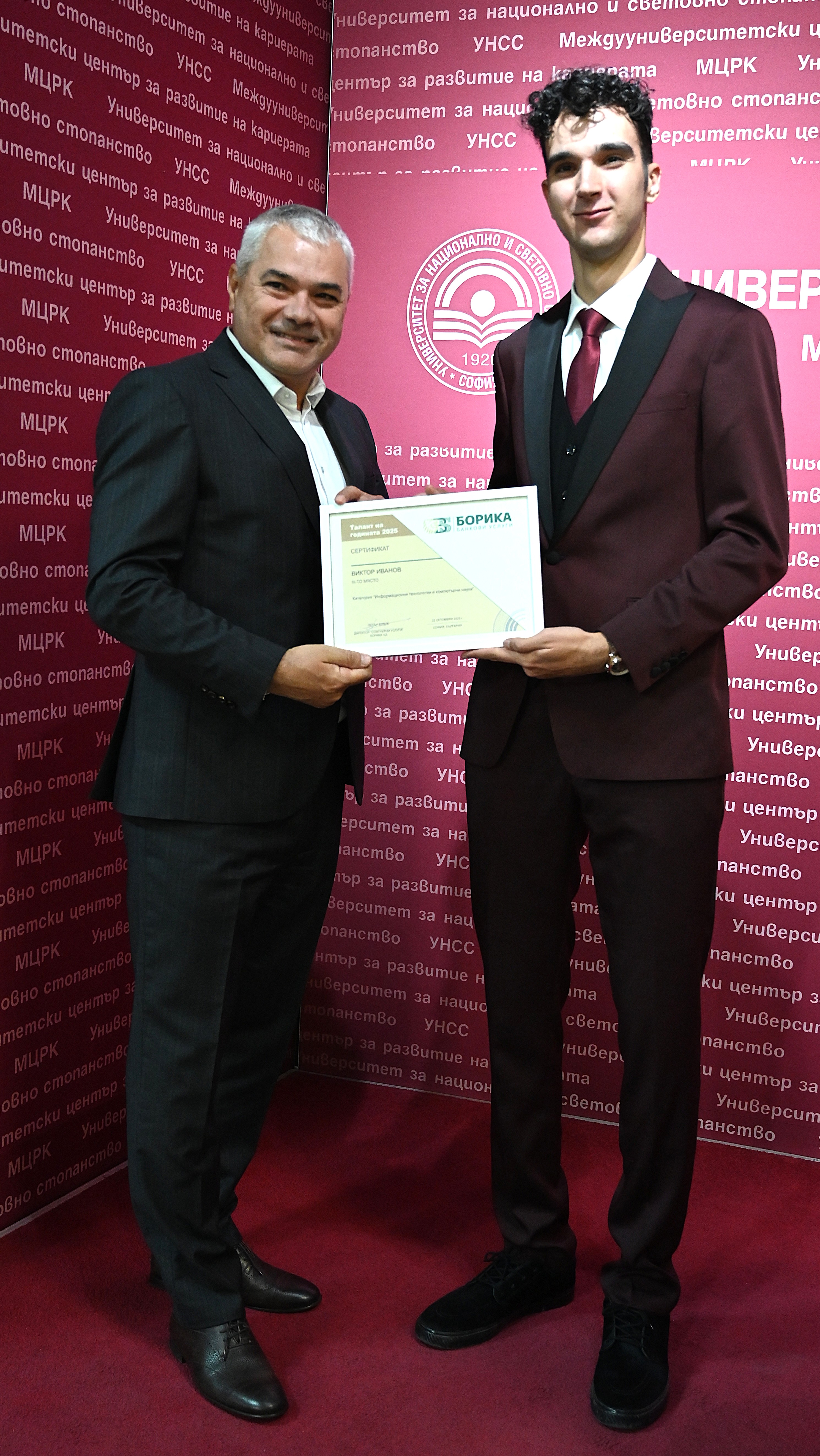 Събитието беше открито с категорията „Информационни технологии и компютърни науки“, реализирана с подкрепата на партньора „Борика“ АД. В нея бяха отличени най-изявените млади таланти: Виктор Иванов, който се класира на трето място, Тонислав Троев зае второто място, а първата позиция заслужено получи Александрина Механджийска, която отсъстваше по време на церемонията, но въпреки това бе аплодирана от залата за своя успех.