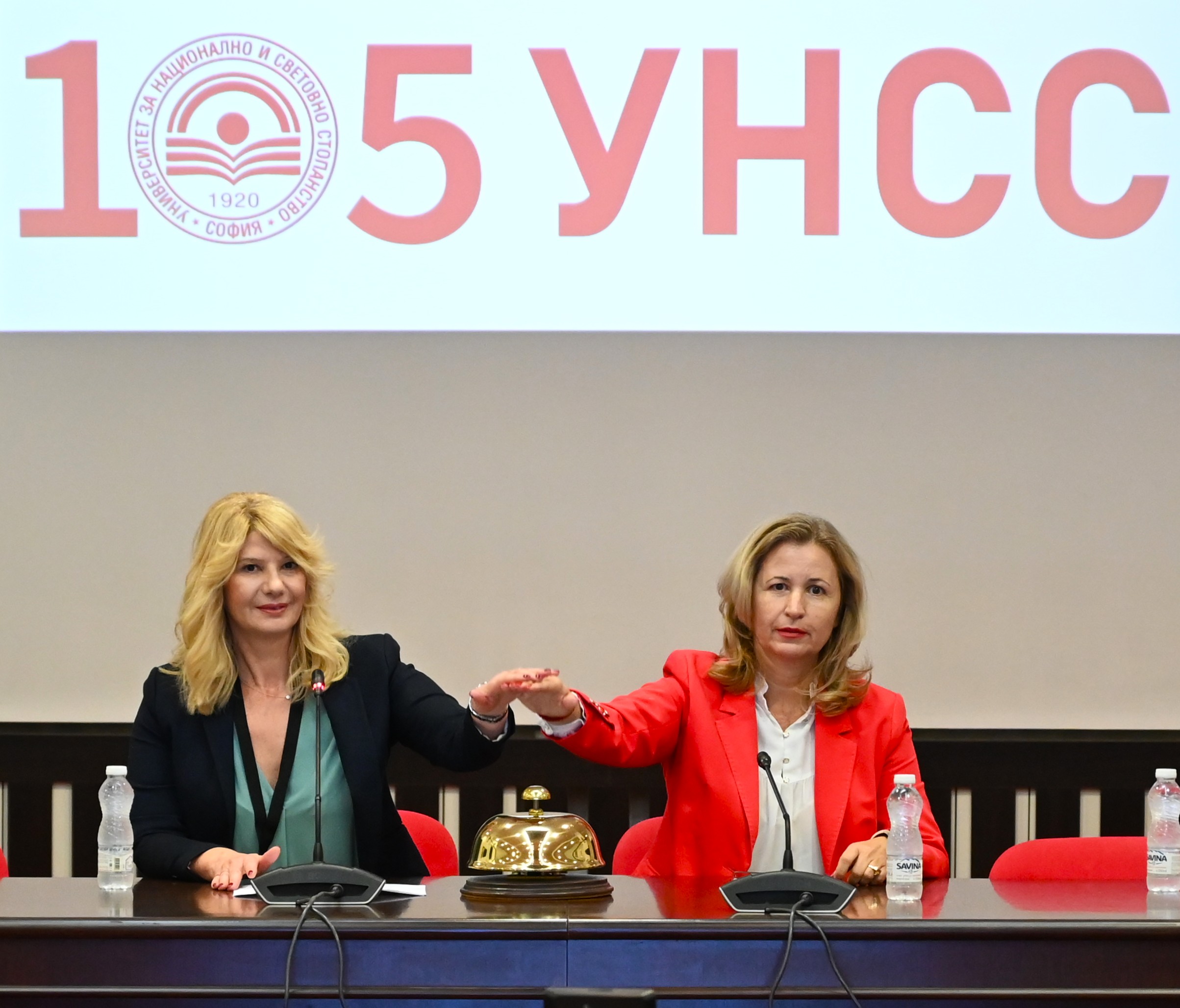Проф. д-р Христина Николова, ръководител на катедра „Икономика на транспорта и енергетиката“, и проф. д-р Цветана Стоянова, зам.-ректор по институционално и бизнес сътрудничество и студентски политики, дадоха старт на конференцията (на снимката долу, от ляво надясно).