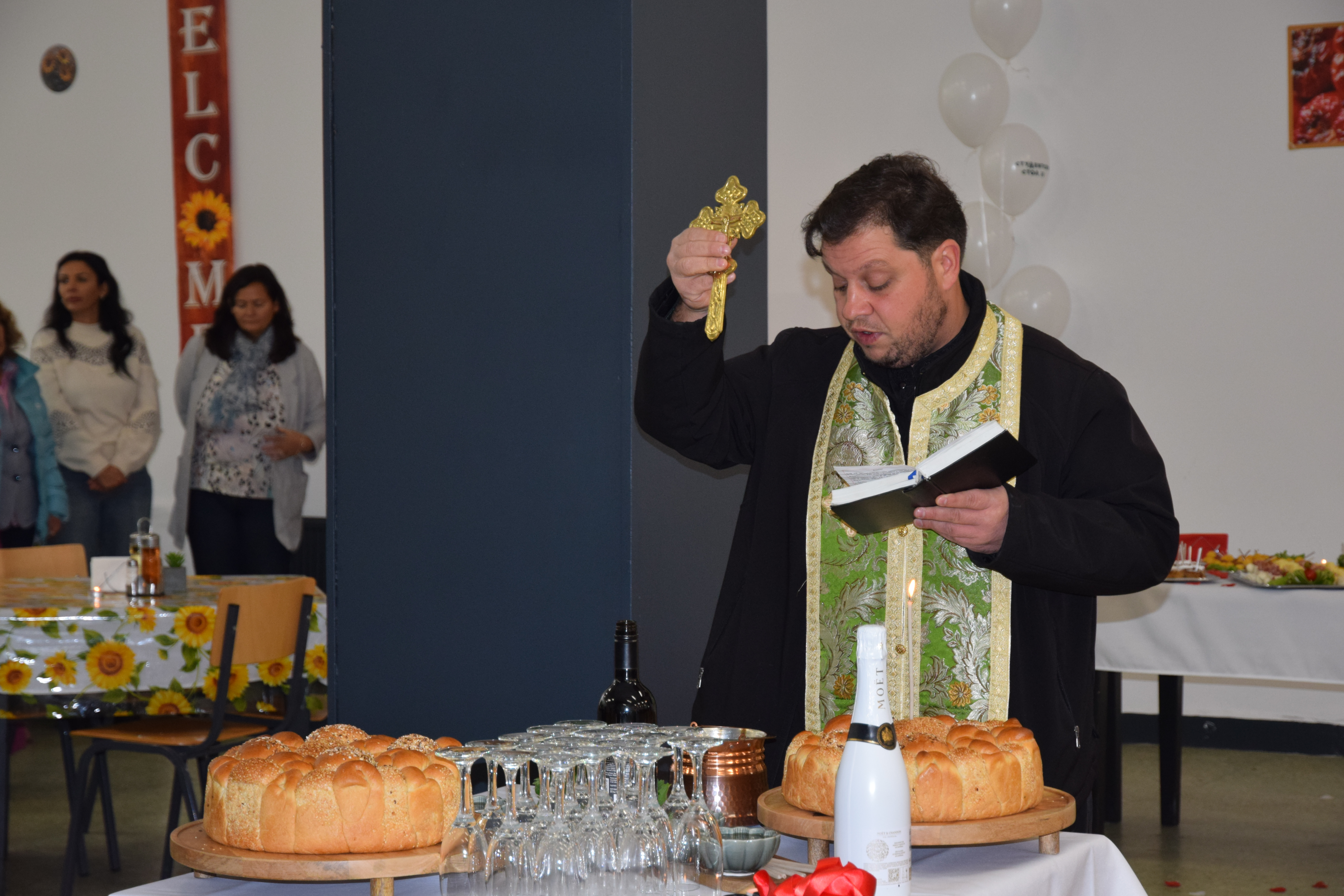 Церемонията продължи с освещаване на Студентския стол от отец Иван |