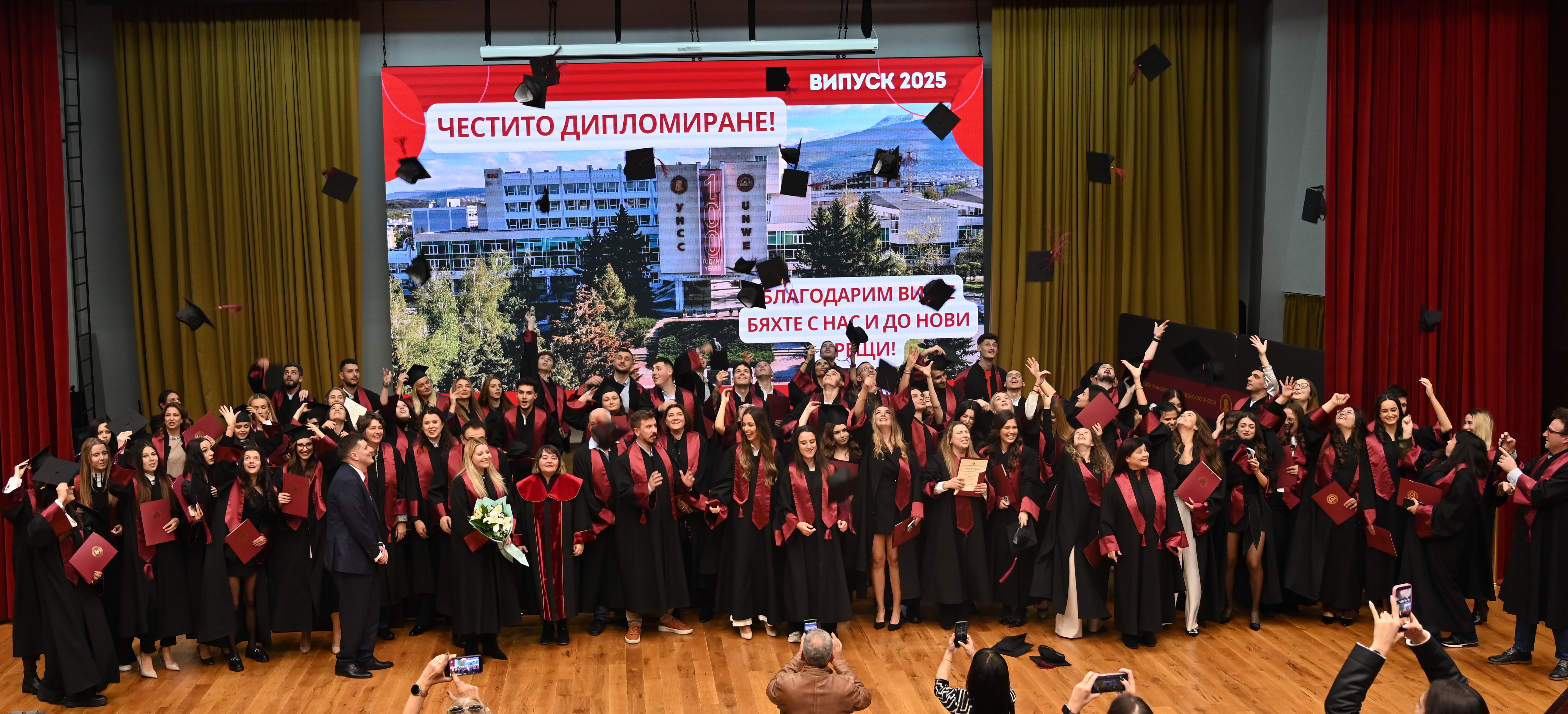 Доц. д-р Светла Цанкова, зам.-декан на факултет „Икономика на инфраструктурата“ и випусков ръководител, сподели: „Дипломата, която ще получите, е резултат от постоянство и усилие, но тя е и нещо повече – инвестиция във вашето бъдеще. С нея вече сте направили първата голяма крачка по пътя към професионалната си реализация. Оттук нататък зависи от вас как ще използвате това, което сте научили!“ и допълни: „Пожелавам ви мъдрост, за да правите правилните избори, и смелост, за да постигате мечтите си. И когато получите дипломите си, не просто ги покажете на близките си, а ги прегърнете и благодарете на хората, които са били до вас през целия ви път.“