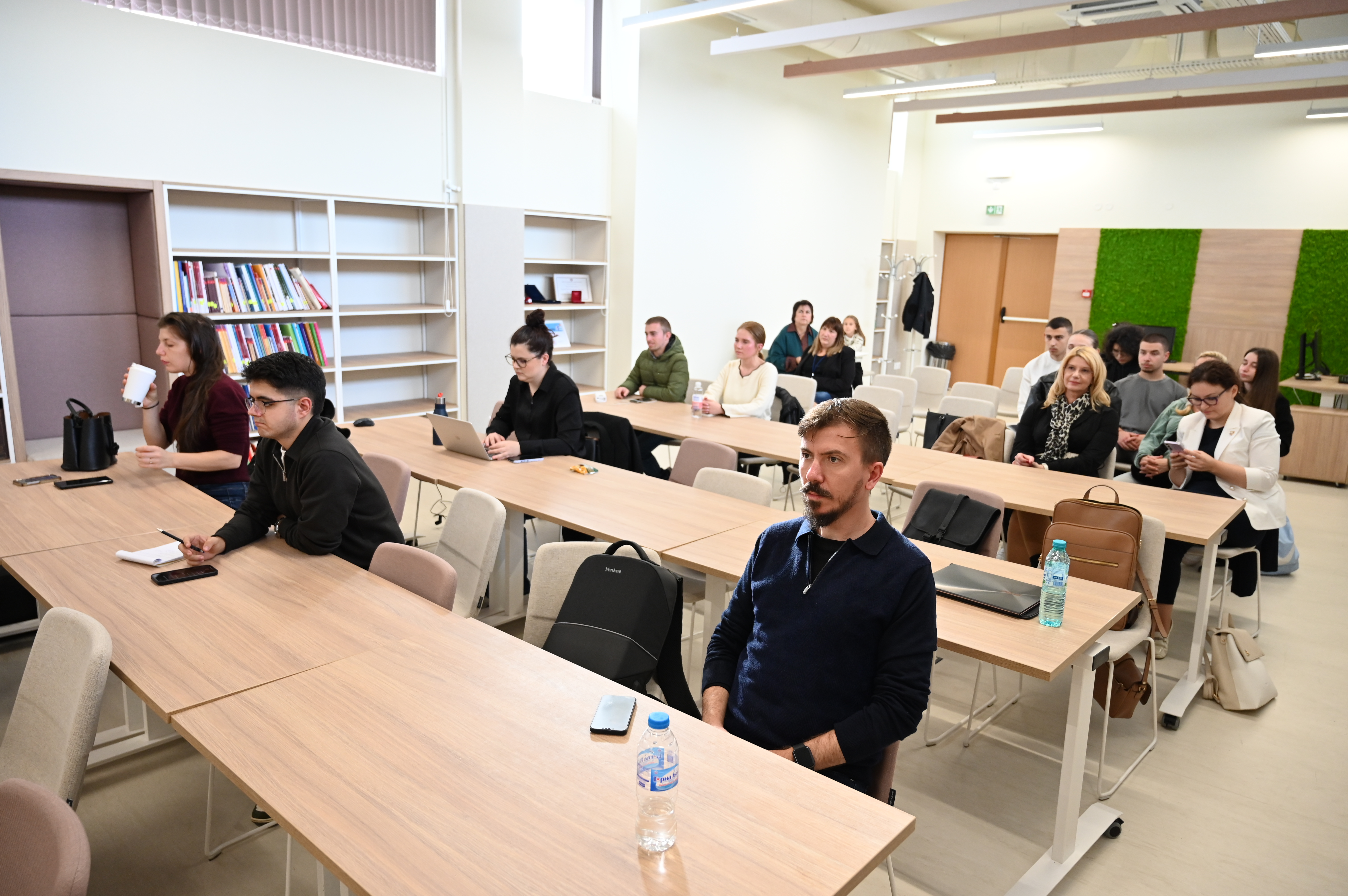 Госта представи Десислава Паунска, ръководител на отдел „Връзки с обществеността“: „Радвам се, че Кристина Патрашкова е гост на нашия университет, защото тя е автор с много широка култура. Тя е пример за сериозен подход и задълбочена журналистическа работа, което е чудесен пример за бъдещите журналисти. Освен това тя не се страхува да задава неудобни въпроси – нещо, което е много важно в днешната медийна динамика“.