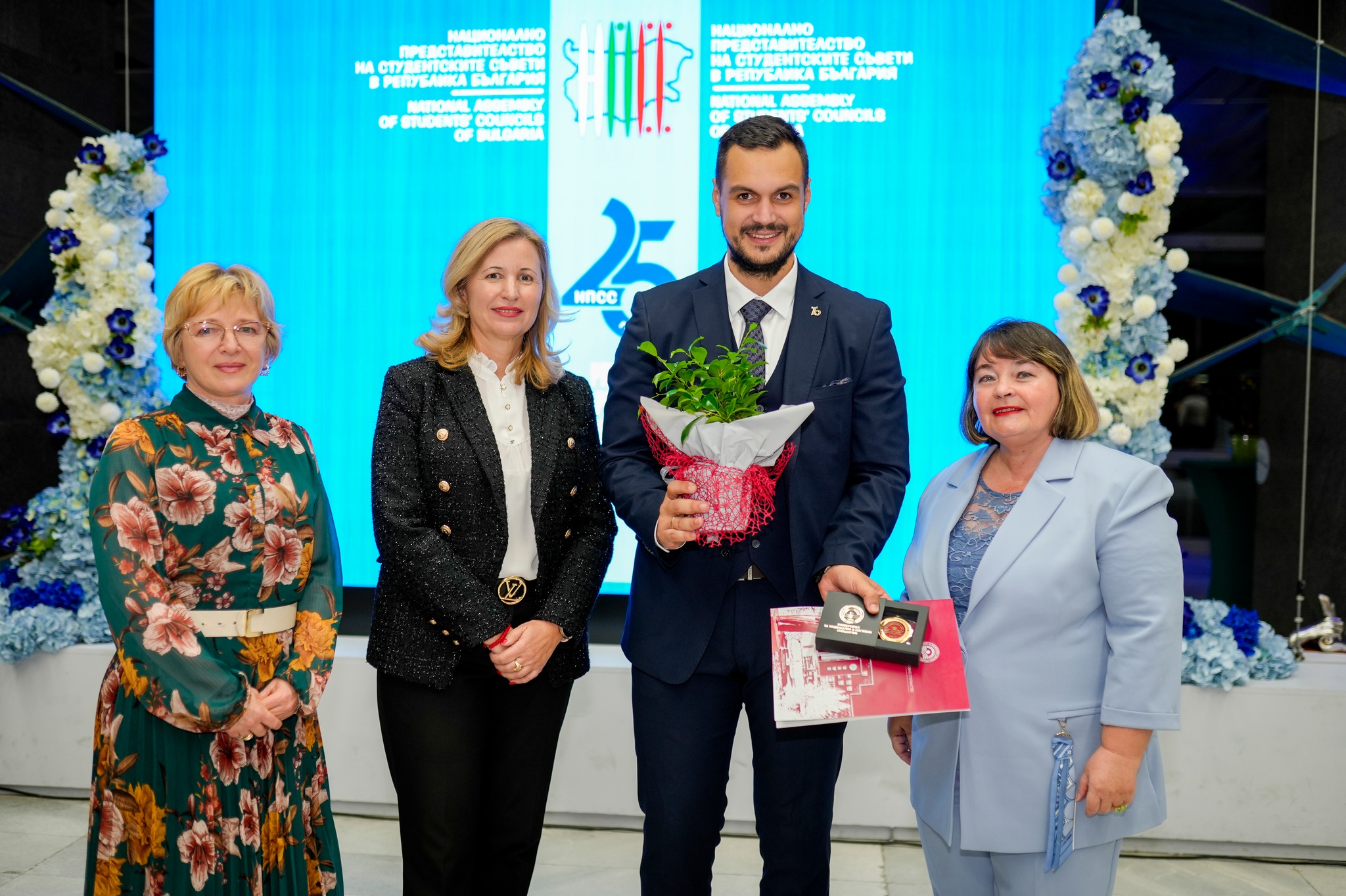 Ректорът удостои с юбилейния медал „105 години УНСС“ Националното представителство на студентските съвети по повод 25 години от създаването на студентската организация.