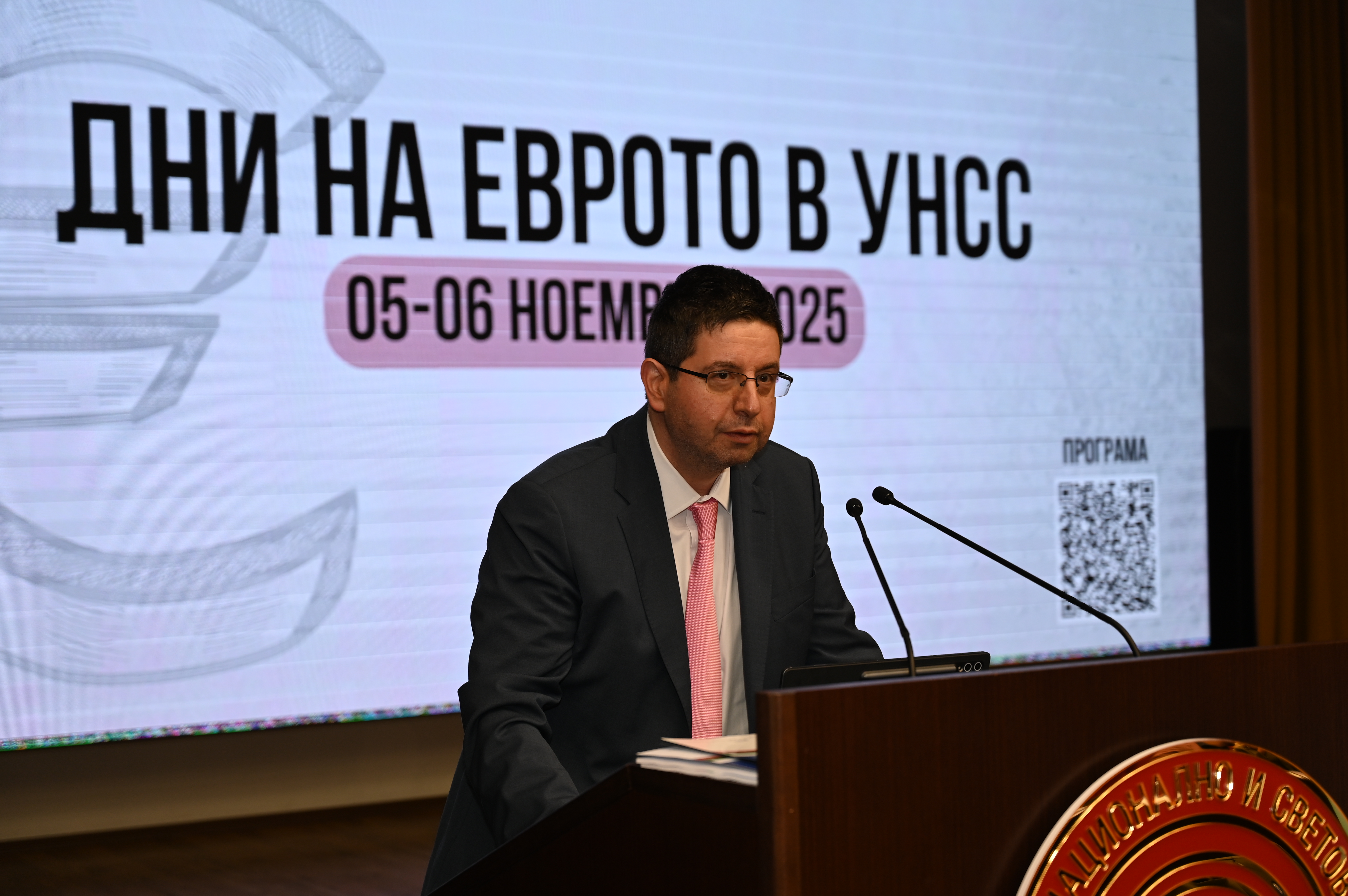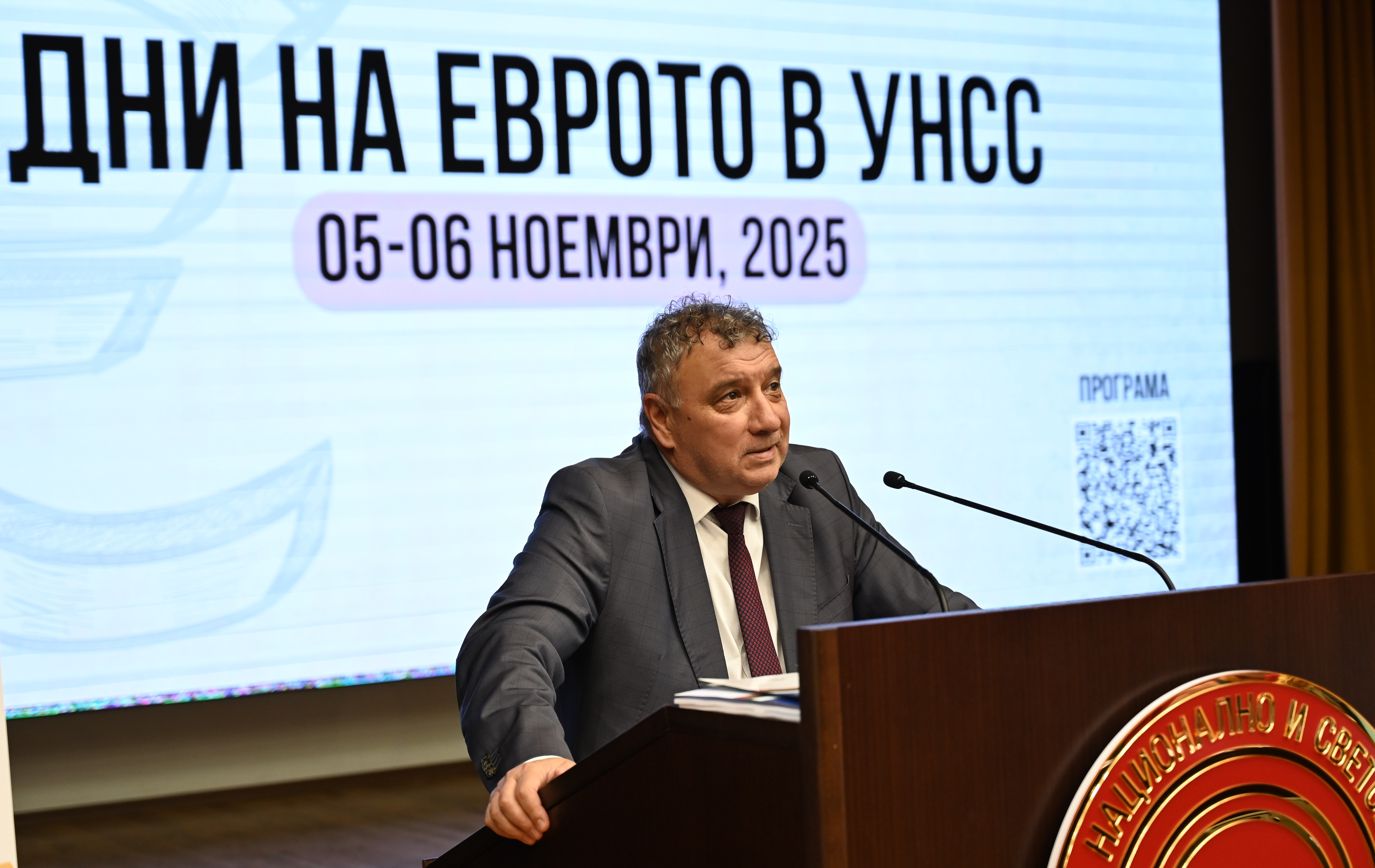 „За мен е чест да видя финансовия елит на страната, събран в аула „Максима“ за откриването на Дните на еврото в УНСС. Инициатива, която поставя във фокуса на общественото и академичното внимание една от най-важните теми за бъдещето на България – присъединяването ни към еврозоната. Днешното събитие е не просто академична дискусия, а платформа за диалог между институции, експерти, бизнес лидери и бъдещи икономисти – нашите студенти. То показва, че УНСС продължава да изпълнява своята мисия – да бъде средище на идеи, анализи и решения, които имат значение за националната икономика и обществото. Пътят към въвеждането на еврото е стратегическо решение за страната ни. Това е процес, който изисква задълбочен анализ, прозрачност и обществено разбиране. Затова е от изключително значение, че тук се събират представителите на финансовите институции, бизнеса, академичните среди и социалните партньори. Ще имат възможност да споделят експертен опит, да отговорят на въпросите и да дадат реална перспектива за очакванията, ползите и предизвикателствата пред България“, каза ректорът на УНСС проф. д-р Димитър Димитров и подчерта: „УНСС е естествен партньор в този разговор. В продължение на повече от век нашият университет подготвя икономистите, финансистите и анализаторите, които изграждат модерната икономика на България. Днес, заедно с Института по икономика и политики на УНСС и с подкрепата на БНБ, ние продължаваме тази традиция, като създаваме пространство за информирана и отговорна дискусия. Благодаря на всички участници, които приеха поканата на УНСС, на колегите от БНБ за партньорството, и на екипа на Института по икономика и политики за организацията на това събитие“.