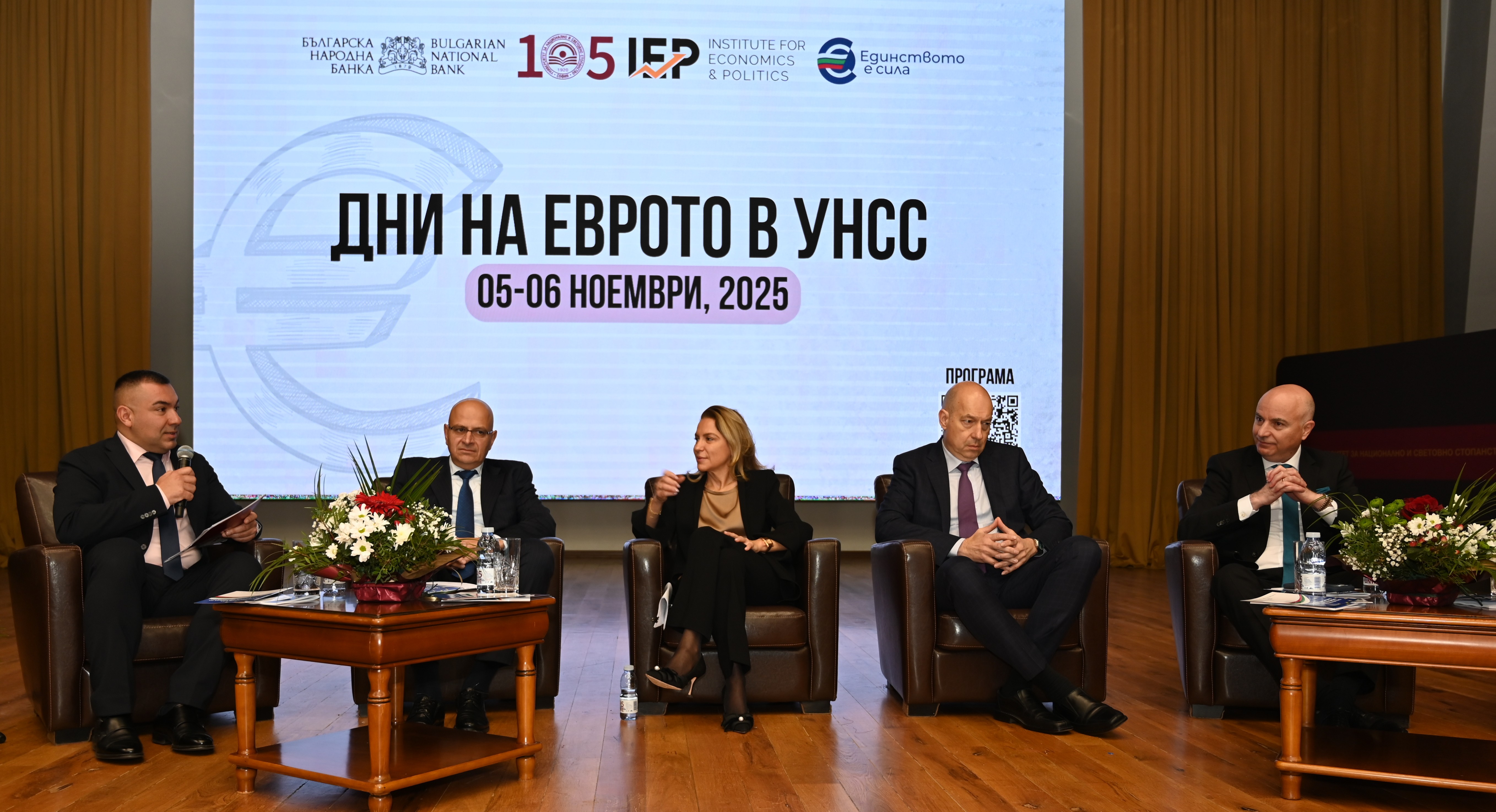 Директорът на Института по икономика и политики доц. д-р Янко Христозов, зам.-ректорът по международната дейности, поздрави присъстващите и представи официалните гости. Той подчерта значимостта на темата и активната роля на УНСС в публичния дебат за присъединяването на България към еврозоната. „Това е стъпка, която ще определи нашето място в европейското икономическо и финансово пространство. За академичната общност на УНСС тази тема е от изключителна важност, защото именно университетите са тези, които трябва да подготвят експертите, анализаторите и лидерите, които ще управляват процесите в следващите години,“ отбеляза доц. Христозов.