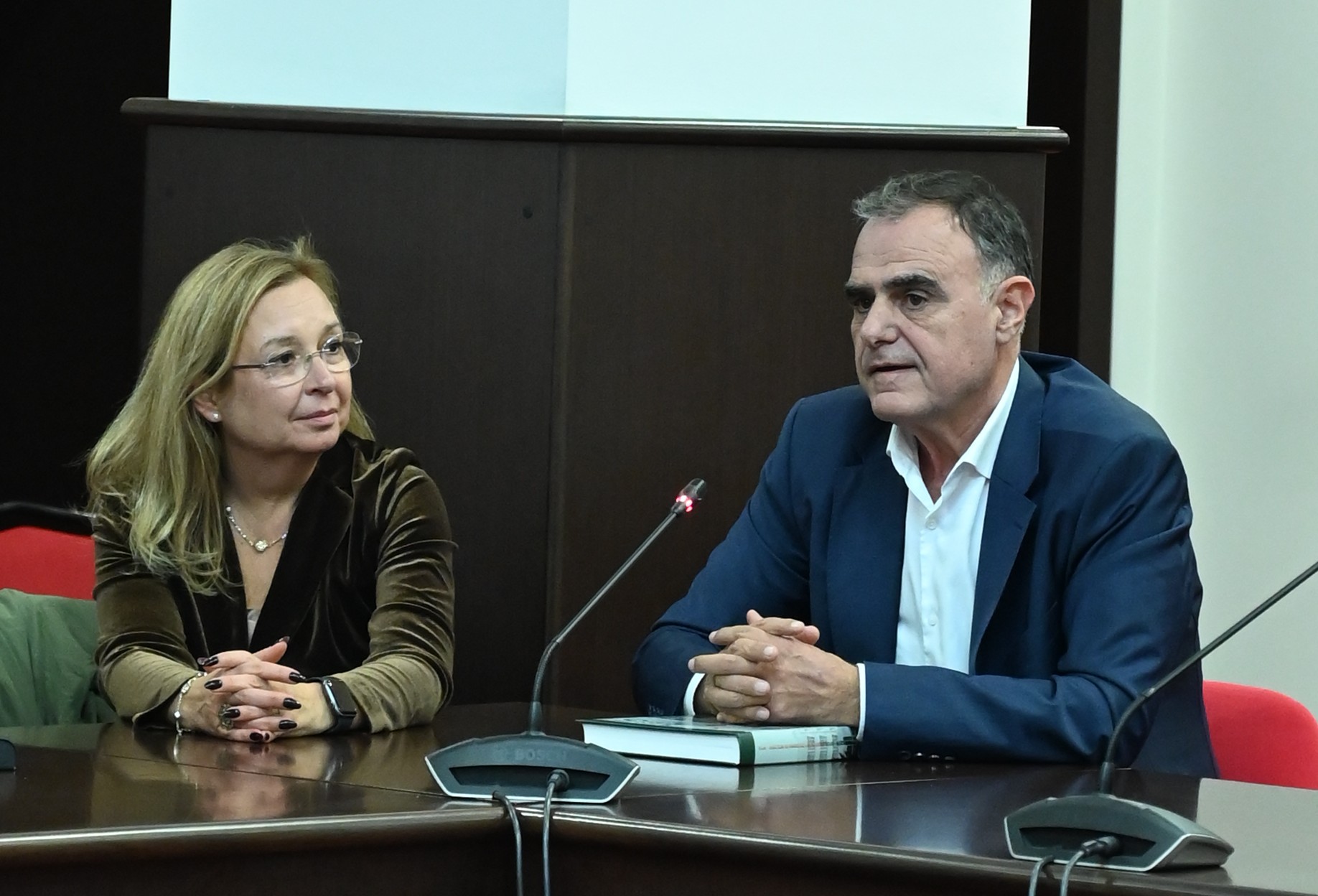| Доц. Зорница Русинова, председател на ИСС и Валентин Гълъбов |
