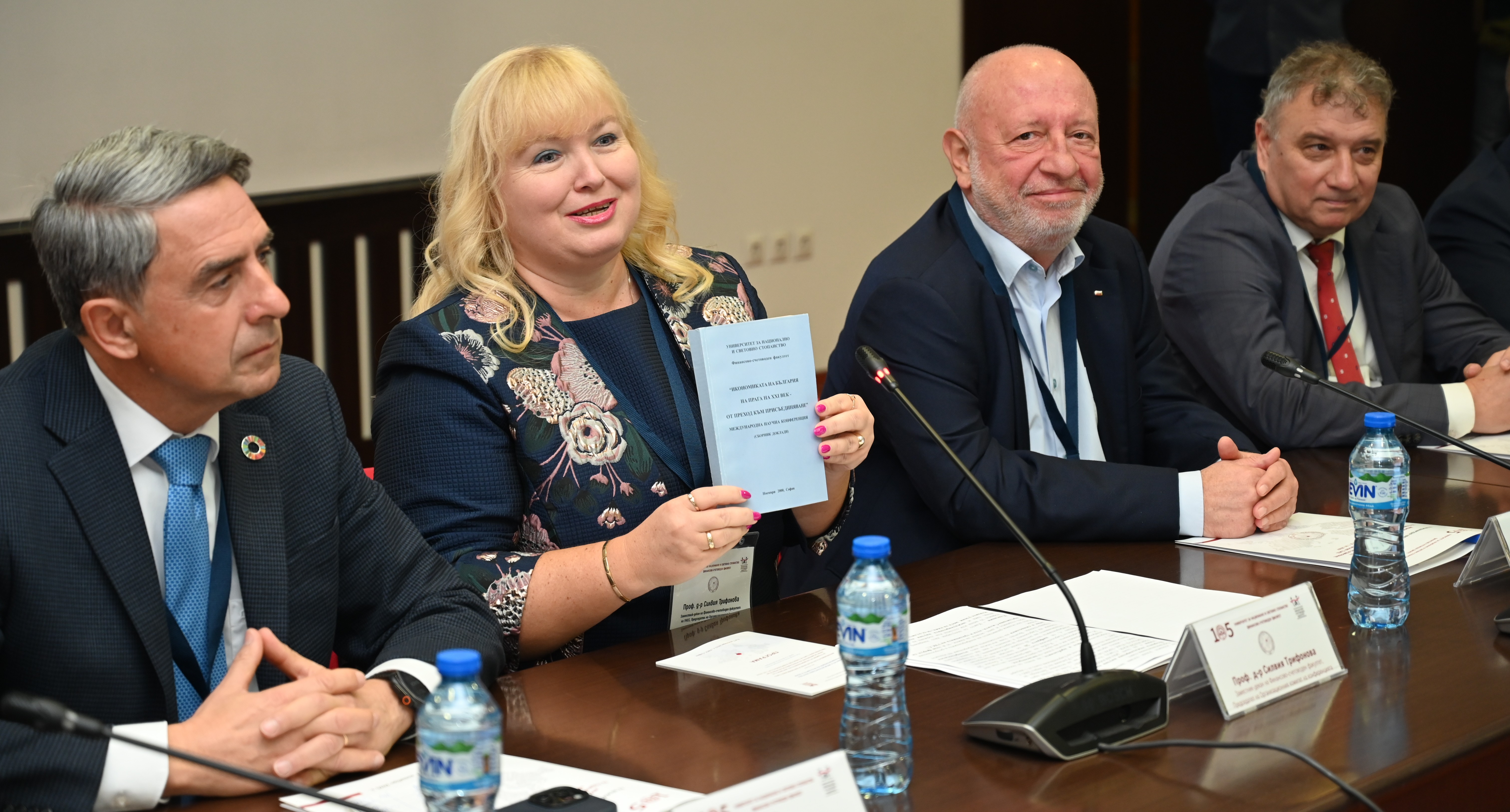 „Тази конференция наистина е дългогодишна, традиционна и рейтингова. Тя е плод на приемствеността, традицията, връзката между поколенията. Този форум се обогатява и развива през годините. Успехът се дължи освен на добрите намерения и на упорития труд. Тук, в докладите, ще стане дума, че България прави качествен скок напред след 1 януари 2026 г., ще придобие нови възможности, нови пазари, ново участие в различни управителни съвети. Надявам се, че хората, които взимат решенията, ще чуят някои от анализите, изводите и прогнозите на докладчиците“, каза проф. Димитър Димитров и подари на ръководителите на Финансово-счетоводния факултет по повод юбилейната конференция статуетка на проф. Стефан Бобчев – основател и първи ректор на Университета.