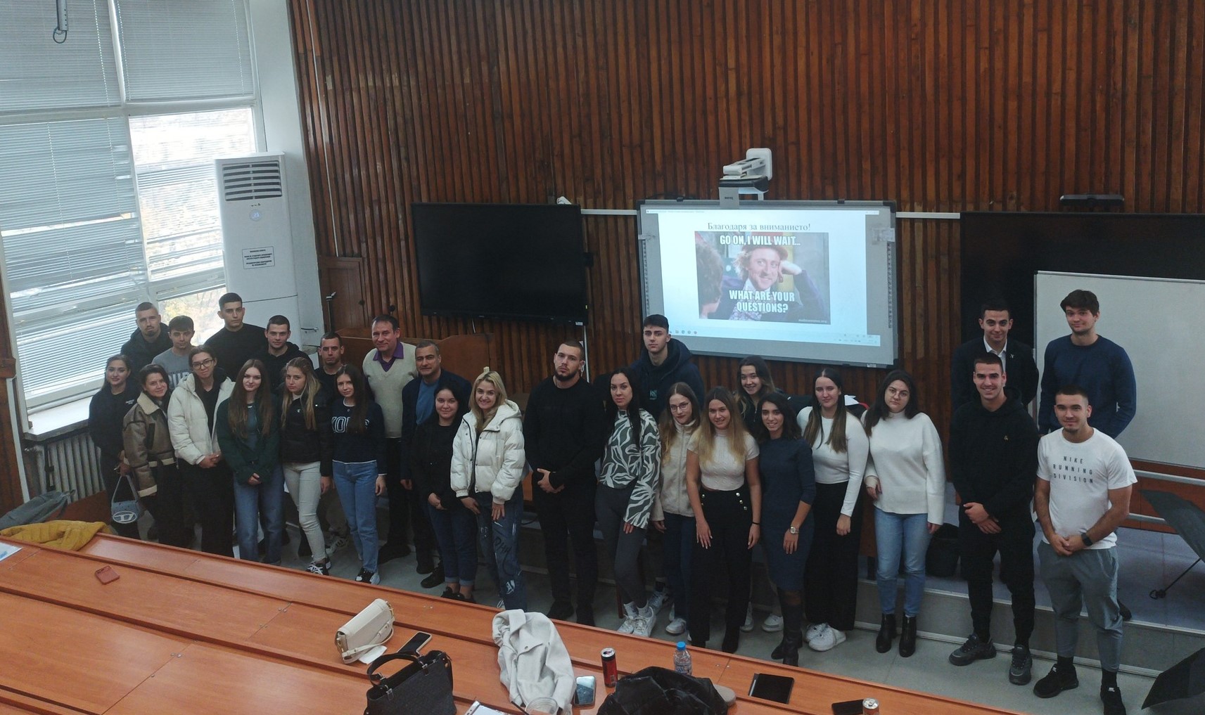 В непринудена обстановка студентите поставиха важни за тях въпроси в сферата на бизнес мениджмънта и получиха автентични и адекватни отговори от д-р Даниел Пангев.
