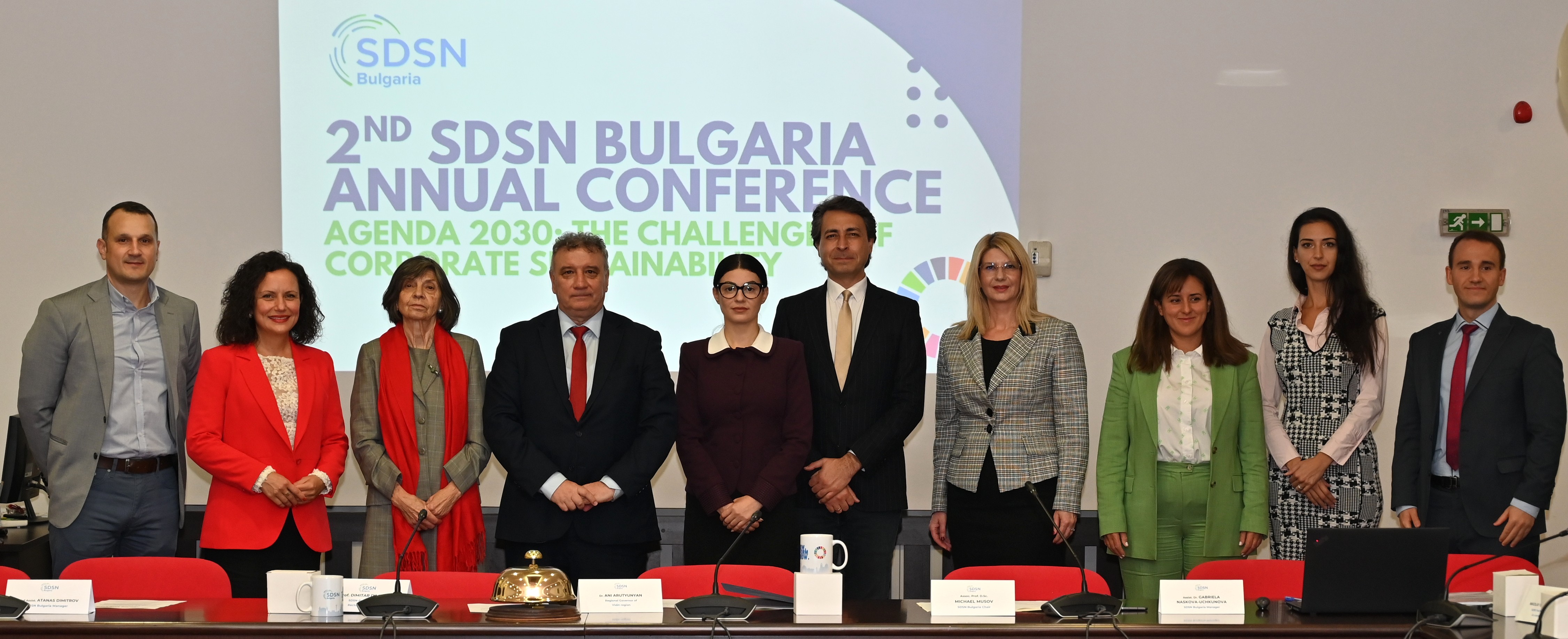 Националната мрежа за решения за устойчиво развитие – SDSN Bulgaria, координирана от УНСС, проведе своята годишна международна конференция. Второто издание на събитието – Agenda 2030: The Challenges of Corporate Sustainability – бе посветено на предизвикателствата пред корпоративния сектор в постигането на Целите на ООН за устойчиво развитие и добрите практики и решения. Повече от 80 присъстващи, сред които представители на академичните среди, държавни институции, организации на бизнеса и компании, както и на SDSN Black Sea, SDSN Romania, SDSN Bulgaria и SDSN Bulgaria Youth дискутираха тематиката, търсейки отговори на належащи въпроси пред бизнеса, държавите и обществото по пътя на устойчивото развитие.