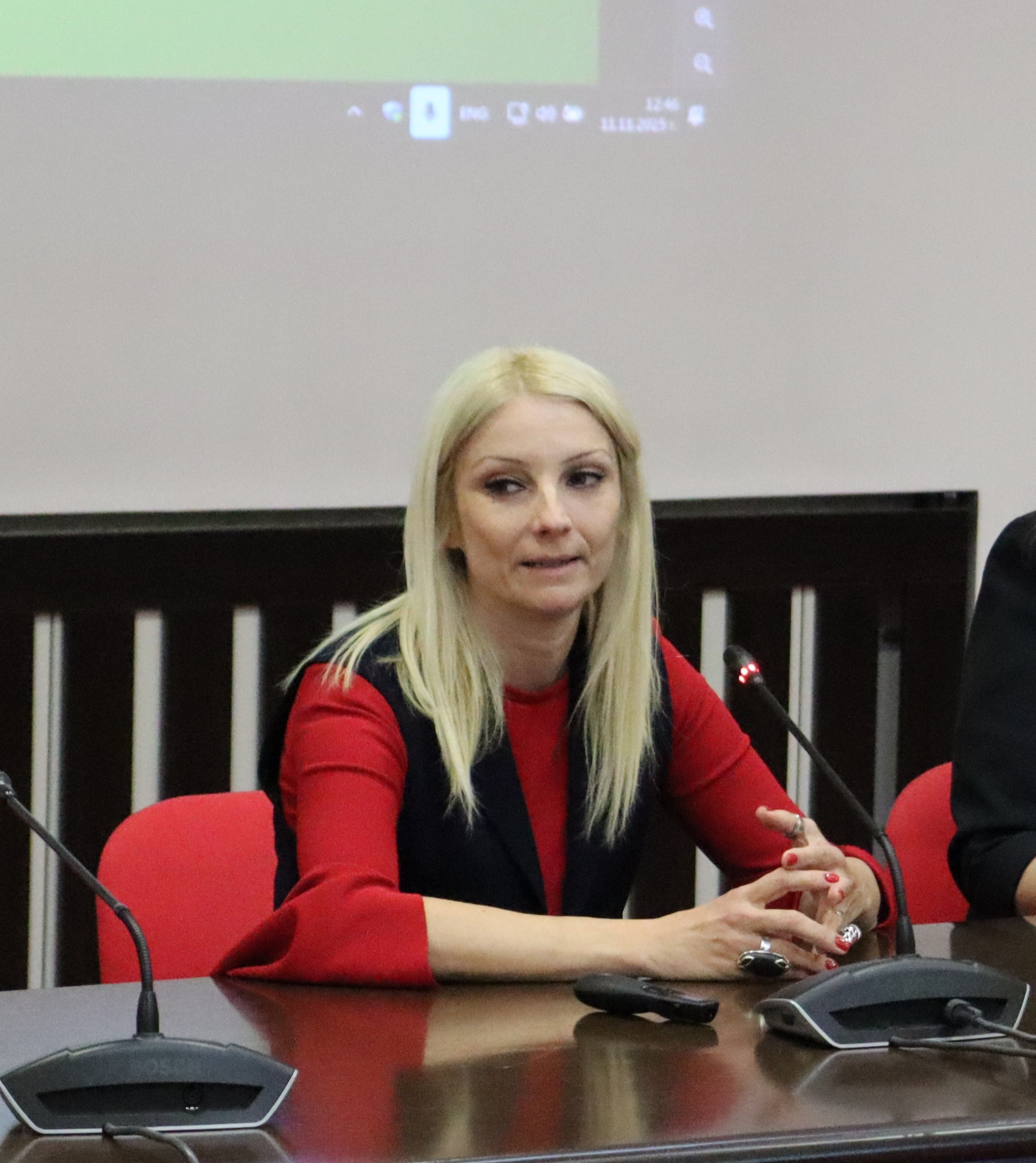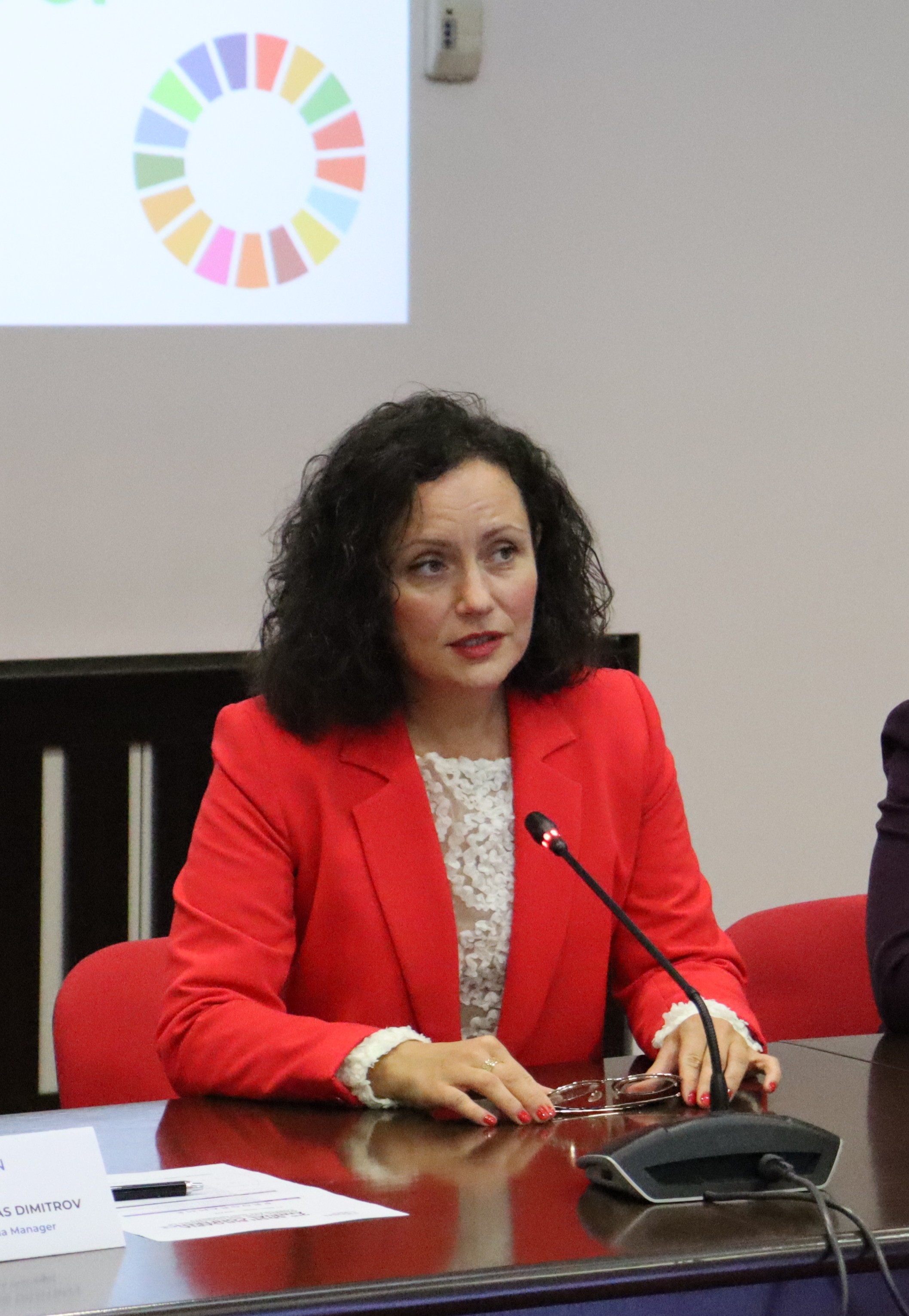 Доц. д-р Елена Преда, мениджър на SDSN Romania и преподавател в Икономическия университет на Букурещ, разгледа ролята на университета в изграждането на капацитет за постигане на Целите за устойчиво развитие и подчерта мястото на студентите в това отношение не само като обучаващи се, но и като участниците при търсенето и прилагането на решения.