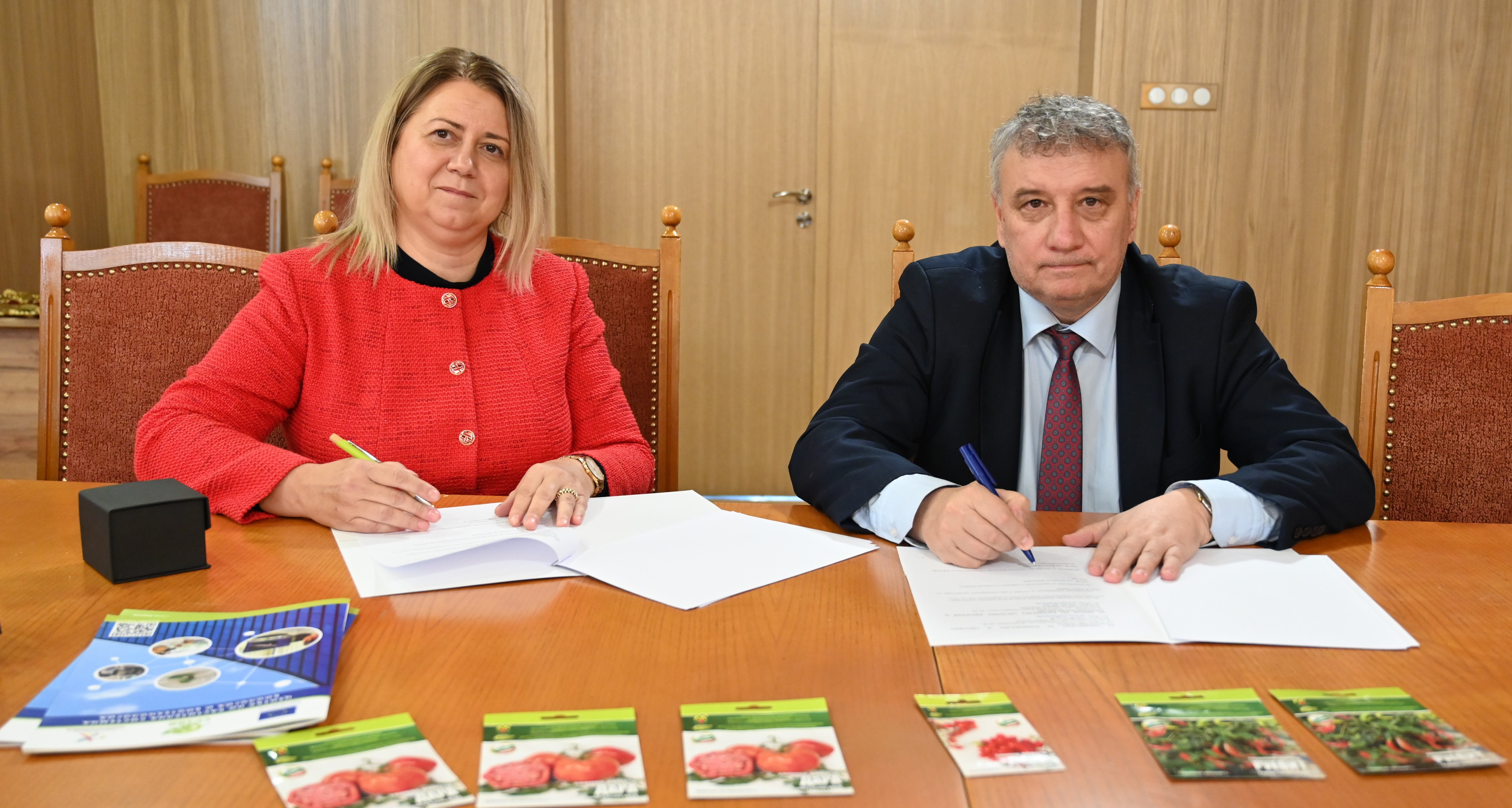Ректорът проф. д-р Димитър Димитров и проф. д-р Весела Казашка, административен директор на Центъра по растителна системна биология и биотехнология (ЦРСББ) – научна организация с водеща роля в областта на растителната биология, подписаха меморандум за сътрудничество (на снимката долу).