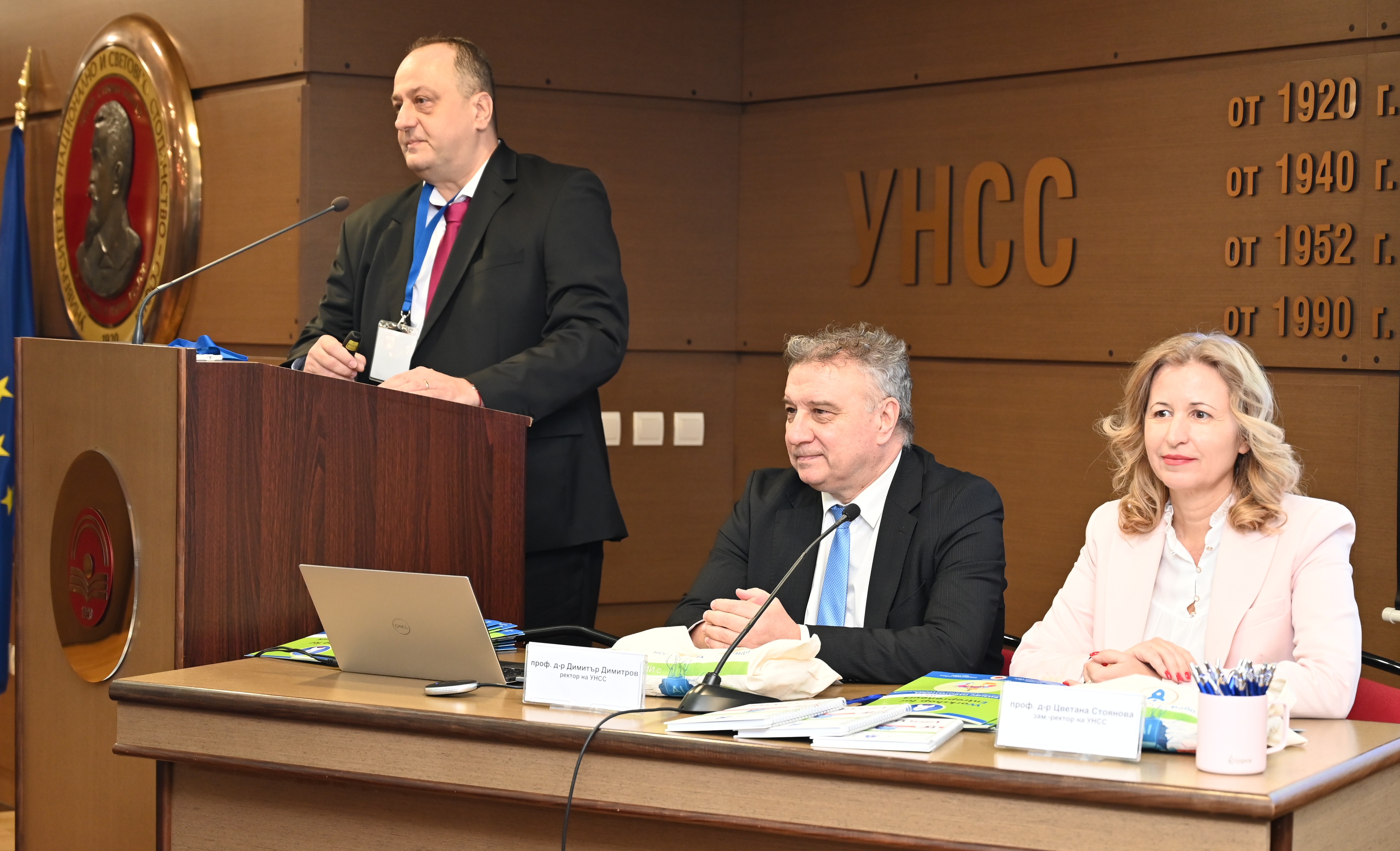Ректорът проф. Димитър Димитров приветства участниците в събитието с думите: „УНСС е номер едно и това се вижда в разработките, които днес ще бъдат представени, и в пълната зала с млади и ентусиазирани хора. Нашите студенти създават свои бизнеси, подбудени от знанието, което получават в Университета. Те носят предприемачески дух, увереност и кураж“. Ректорът каза още, че това е пътят за реализация и отбеляза, че наш екип за стартъп ще представи Университета в Сан Франциско, където ще се бори за наградата от 1 млн. долара. „Предприемачеството се цени и задачата на УНСС е да създаде условия за развитие на студентите с предприемачески дух. Изкуственият интелект крие много възможности, но въпросът е да се използва разумно и рационално за нашите цели – естественият и изкуственият интелект да работят заедно“, допълни още проф. Димитров.