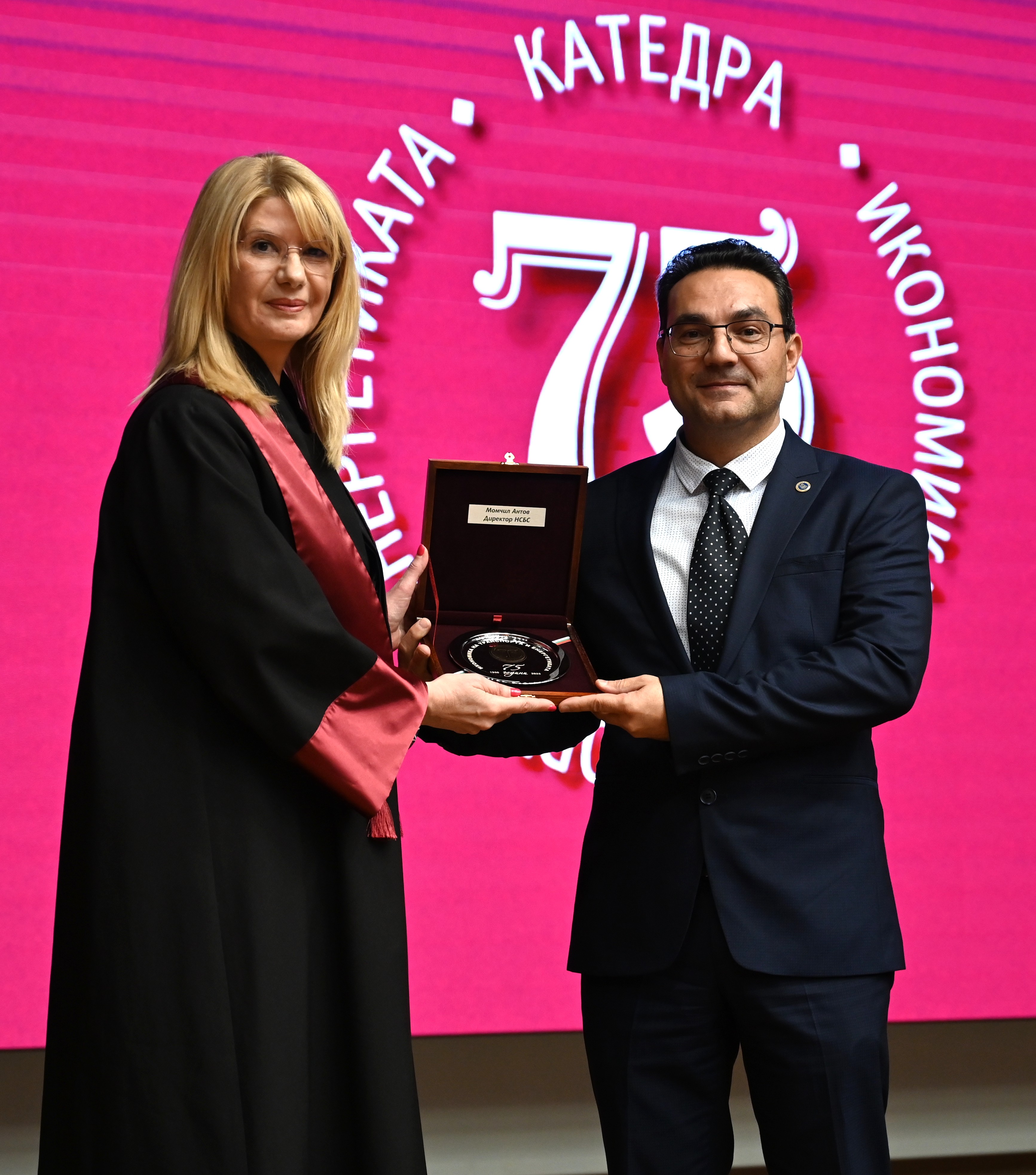 По повод 75 години от създаването на катедра „Икономика на транспорта и енергетиката“ доц. Момчил Антов получи плакет за приноса и помощта, която оказва на Катедрата.