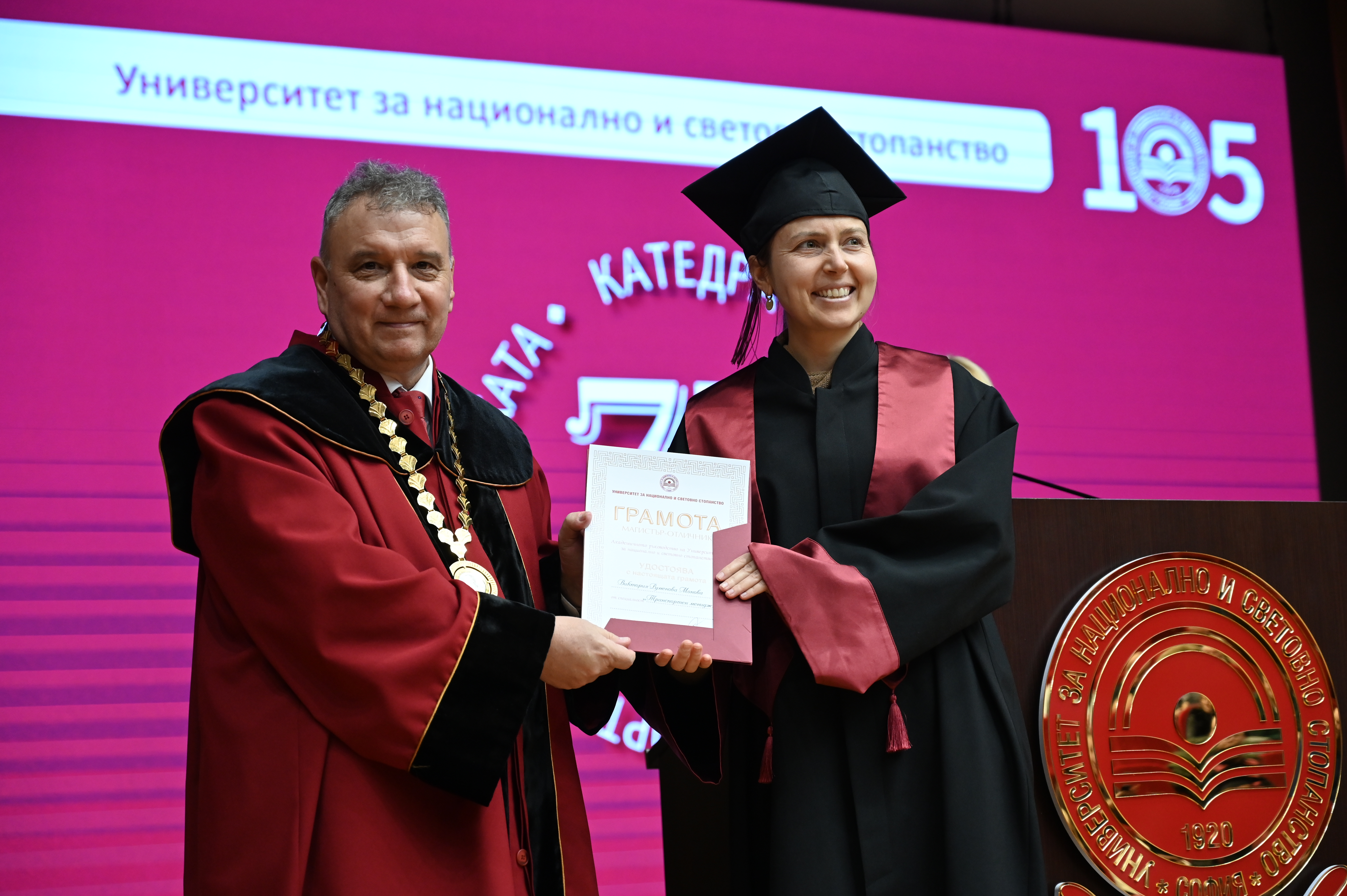 „Уважаеми абсолвенти, поздравявам ви за най-успешната инвестиция във вашия живот. Вие инвестирахте години във вашето образование и оттук нататък предстои да получавате дивидентите от това, да доказвате колко знания и умения сте придобили в нашия университет“, отбеляза проф. д-р Христина Николова.