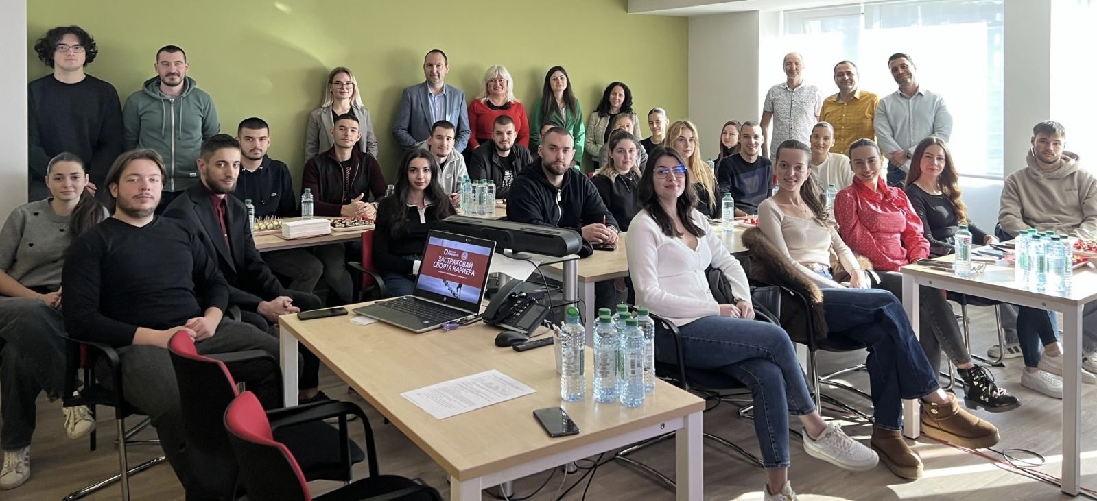 Цветомила Кирилова запозна студентите с основните ценности на застрахователната компания, които са в основата на изграждането на успешен екип, процеса по подбор в застрахователното дружество, както и процеса по адаптация на новите служители, в който компанията осигурява подкрепа на новите служители във всяка стъпка. Тя представи стажантската програма, чрез която компанията се стреми да привлече млади таланти с потенциал и мотивация, които имат желание да изградят успешна кариера в застраховането.