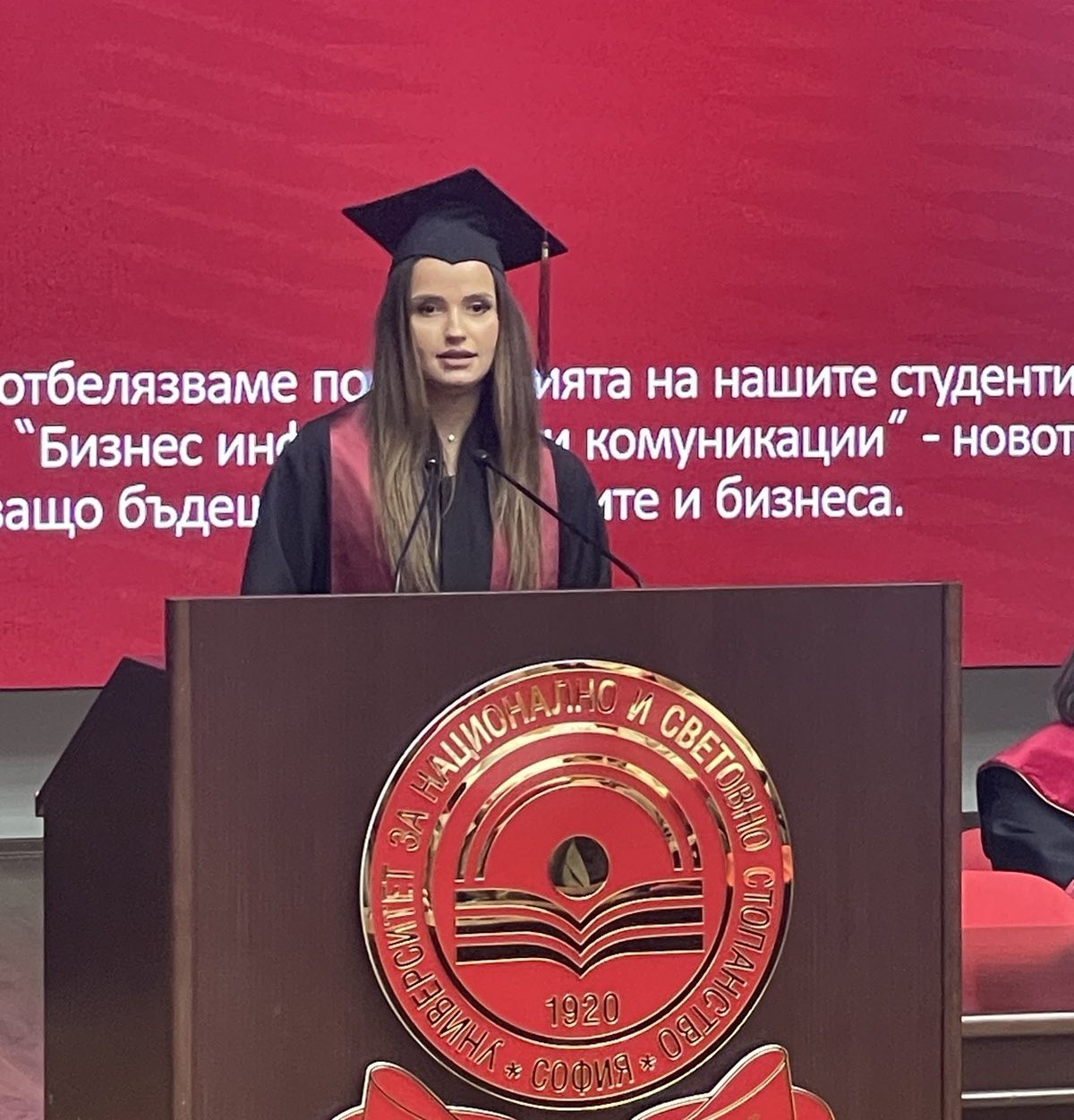 Андрей Вишневский също поздрави своите състуденти, преподавателите и родителите. „Този тържествен момент е официален край на нашия бакалавърски път, но както се казва, всеки край е ново начало. Пожелавам на всички това начало да е успешно и щастливо и нека късметът бъде с вас“.