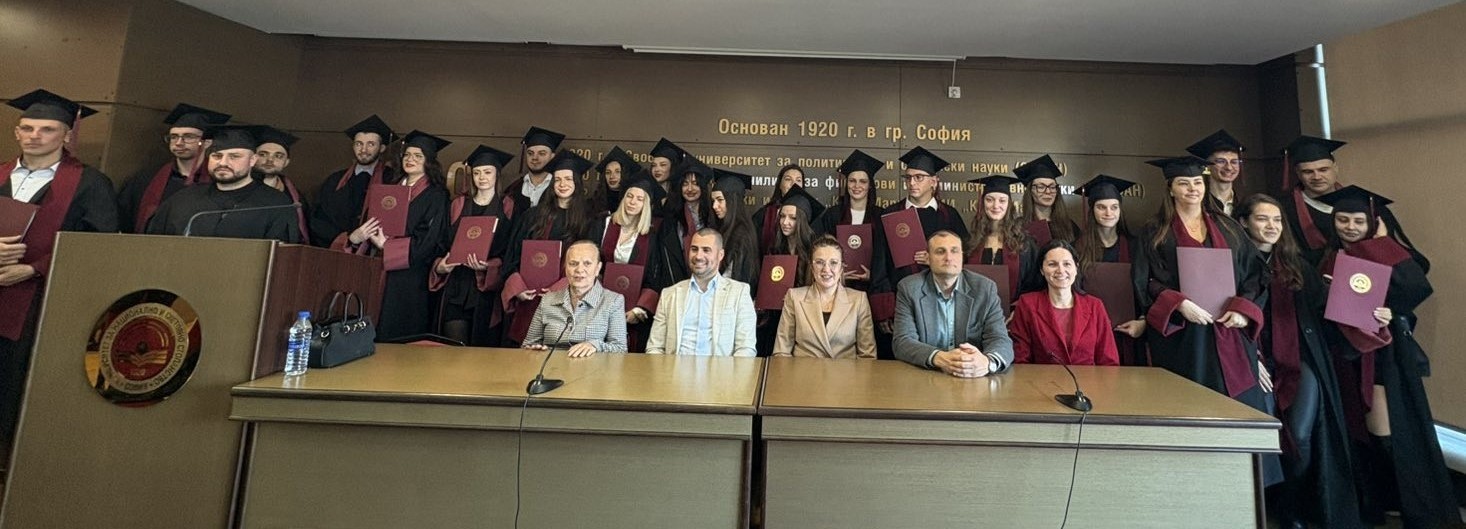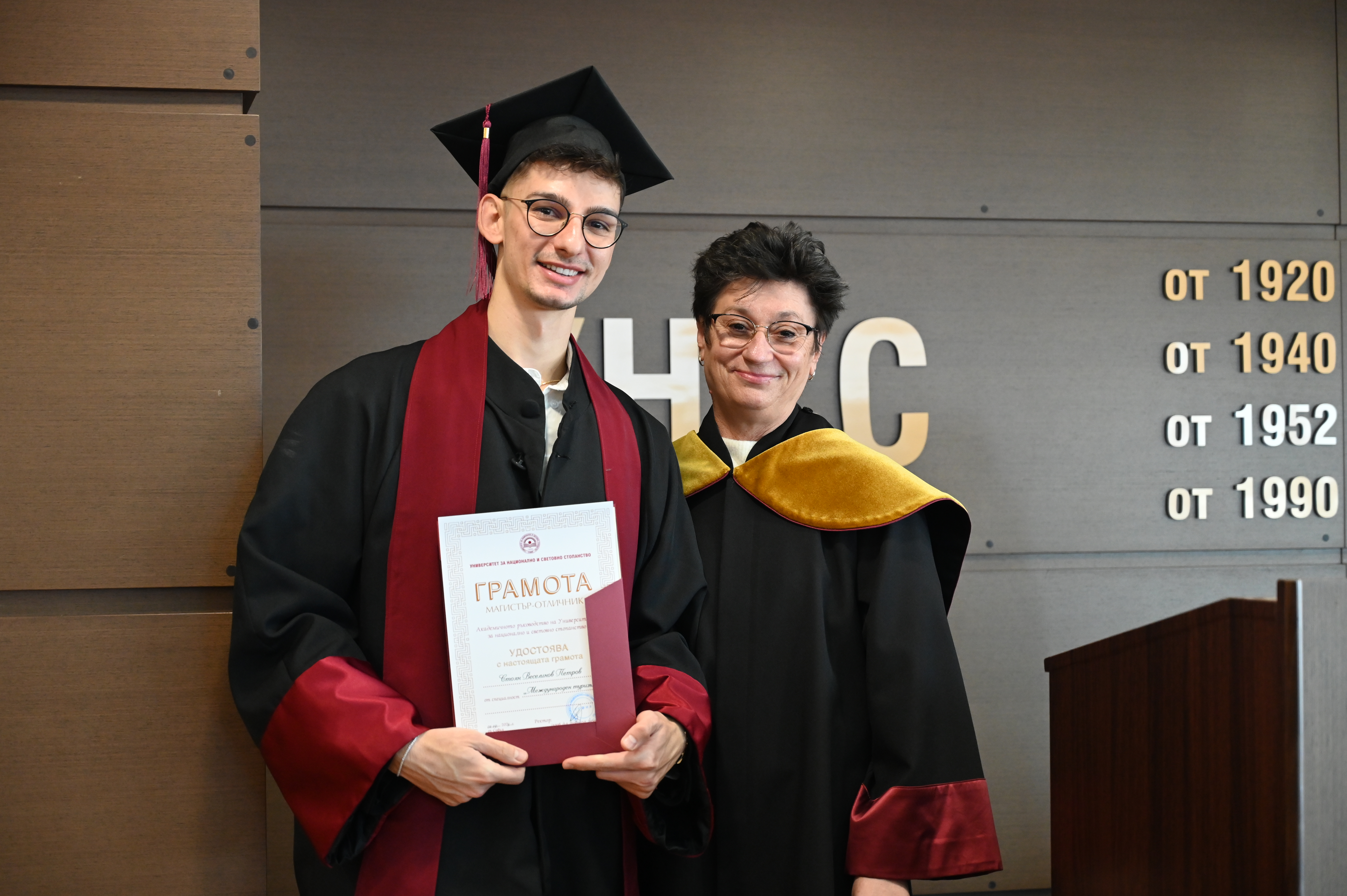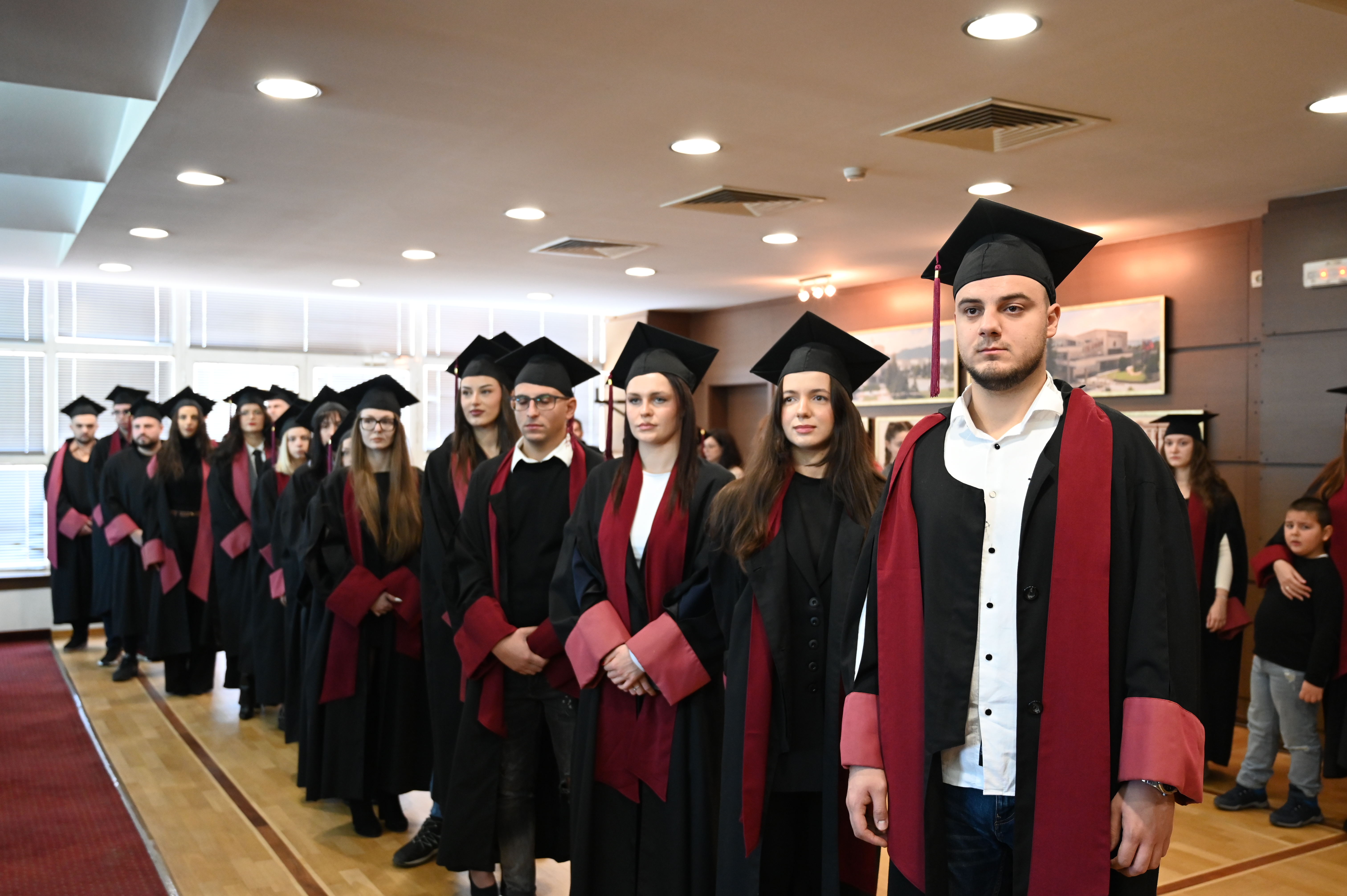 Бакалаврите, завършили специалност „Икономика на туризма“, и магистрите в редовна и дистанционна форма на обучение, завършили специалностите „Международен туризъм“ и „Мениджмънт в туризма“, получиха тържествено своите дипломи.