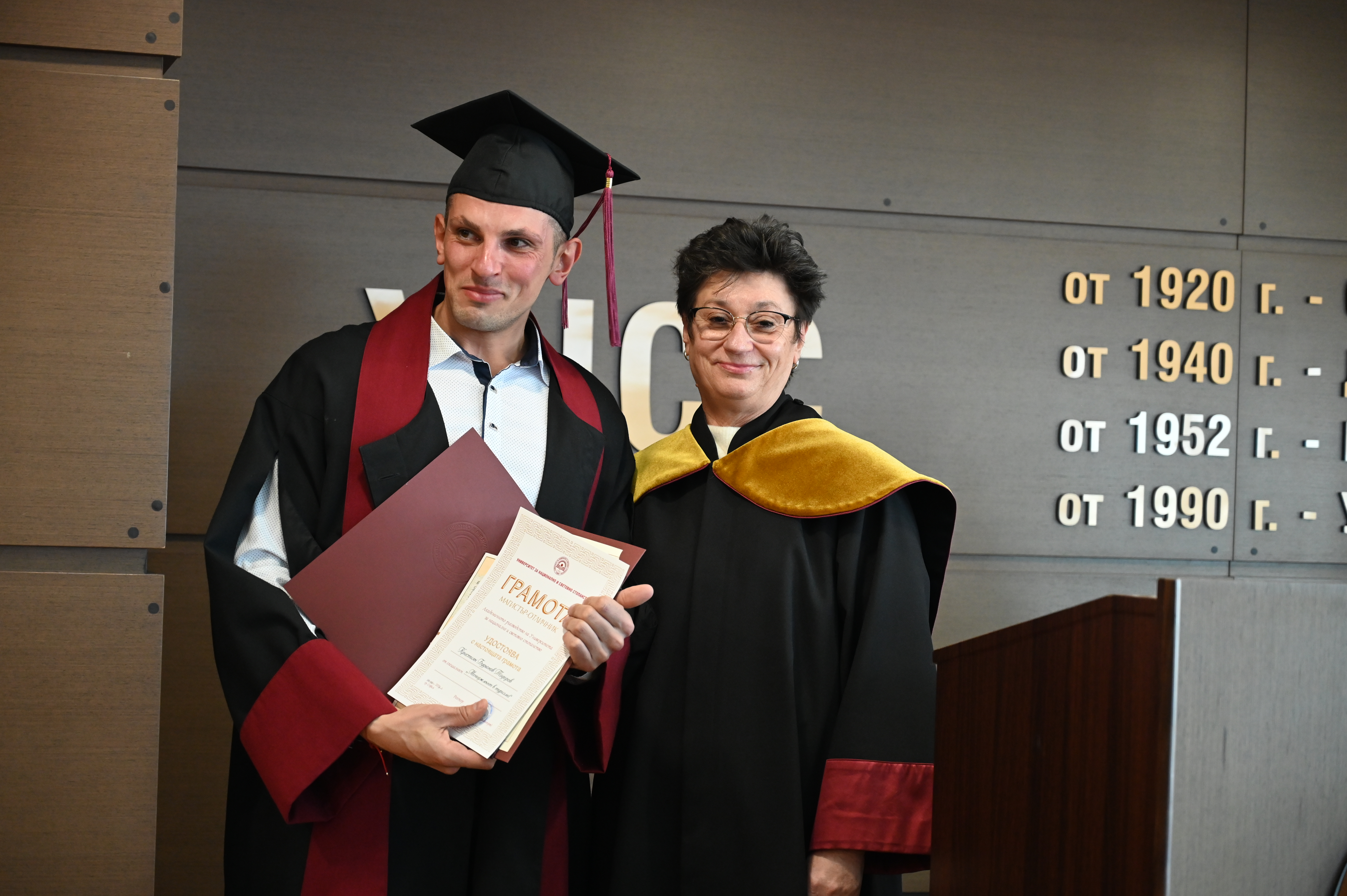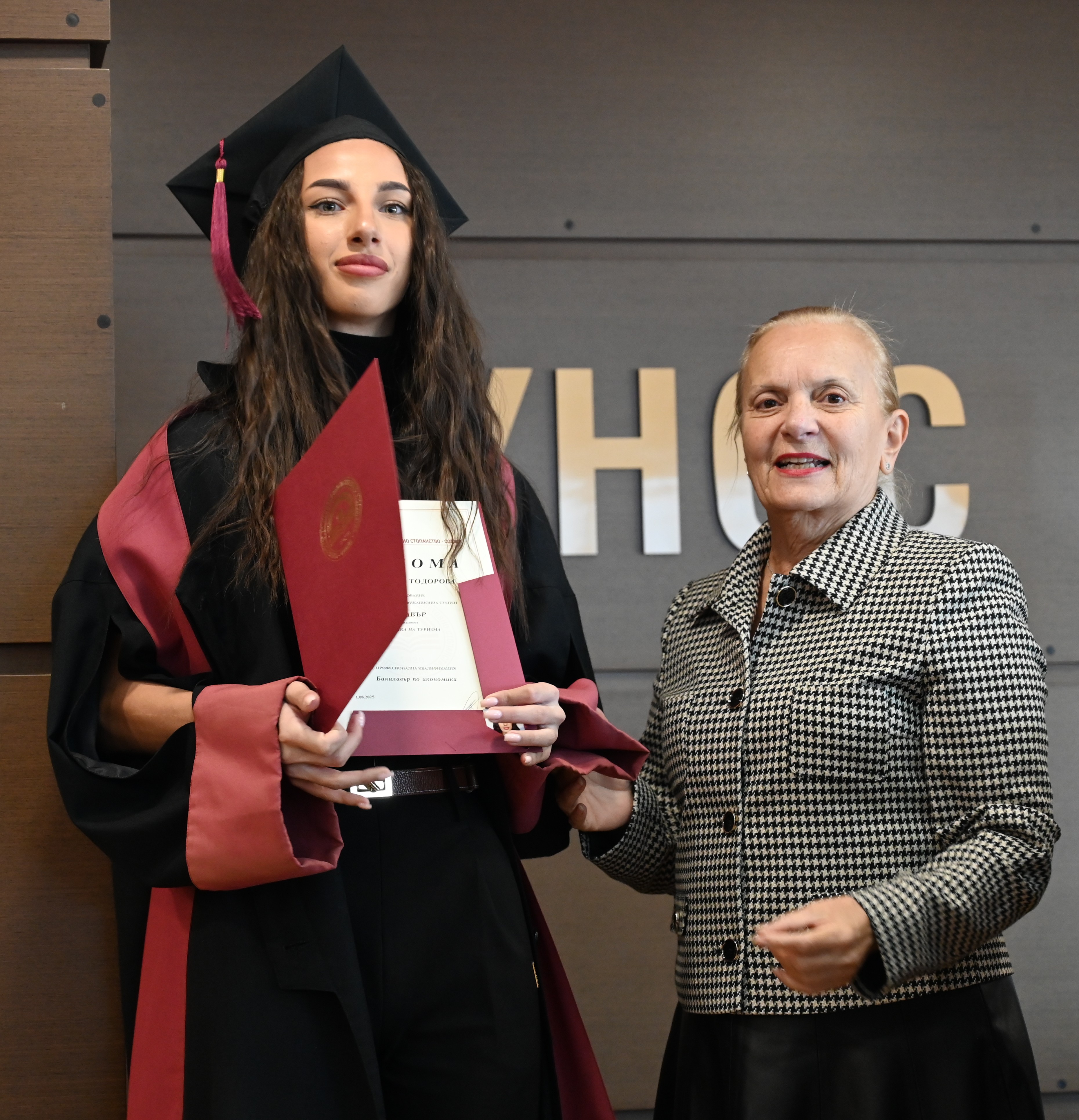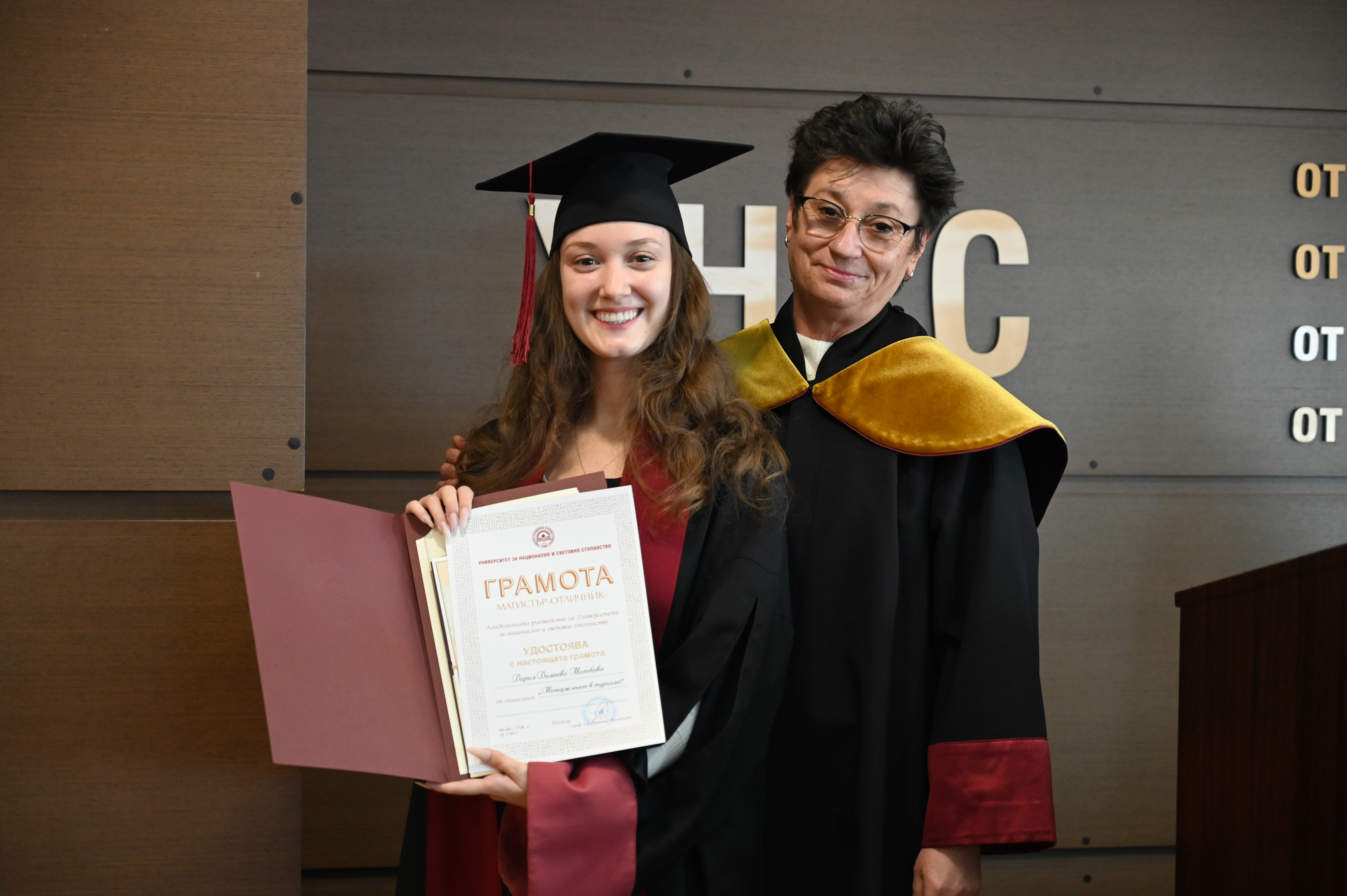 Доц. д-р Силвия Терезова и проф. д.н. Таня Парушева връчиха първо дипломите на абсолвентите с най-висок успех.