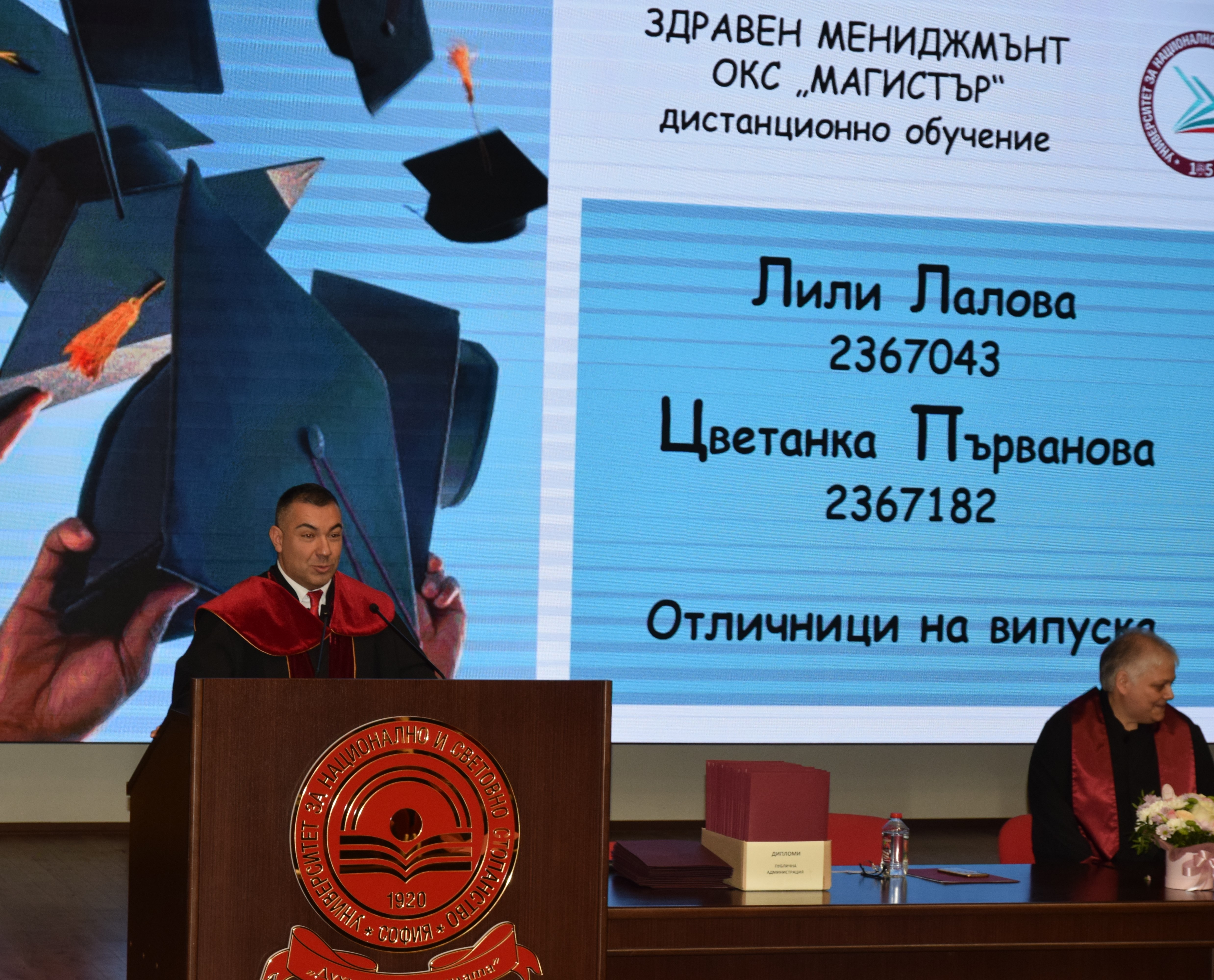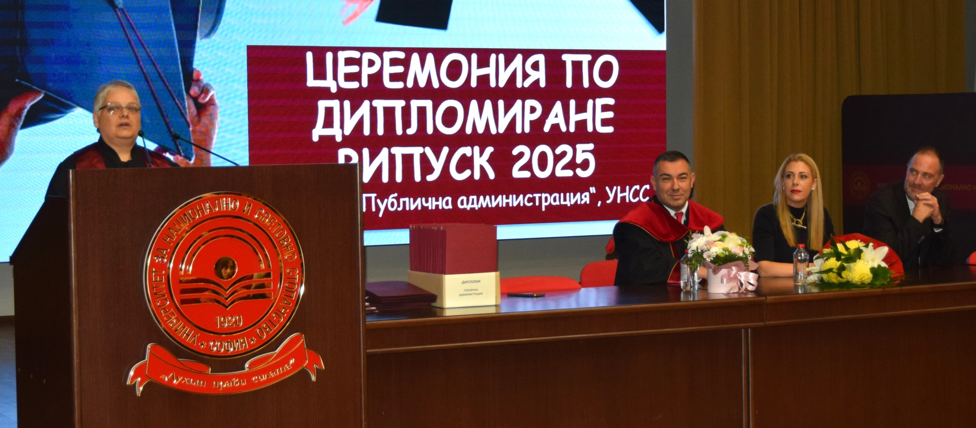 На тържествена церемония бяха връчени дипломите на бакалаврите и магистрите, завършили специалност „Публична администрация“, и на магистрите, завършили „Публична администрация със специализация „Здравен мениджмънт“.